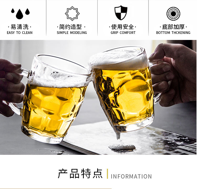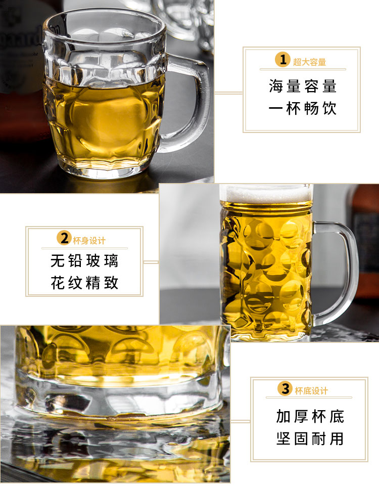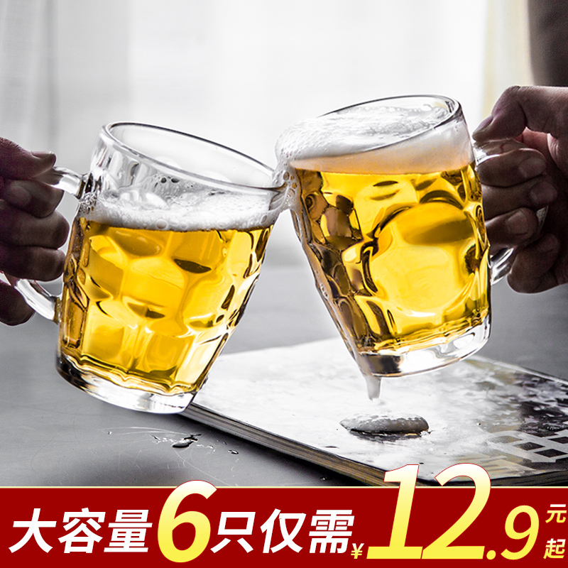유리 컵 양조 맥주 컵 홈 대용량 드래프트 맥주 컵 500ml 핸들 바 상업용 Yingzheng스토어 가기