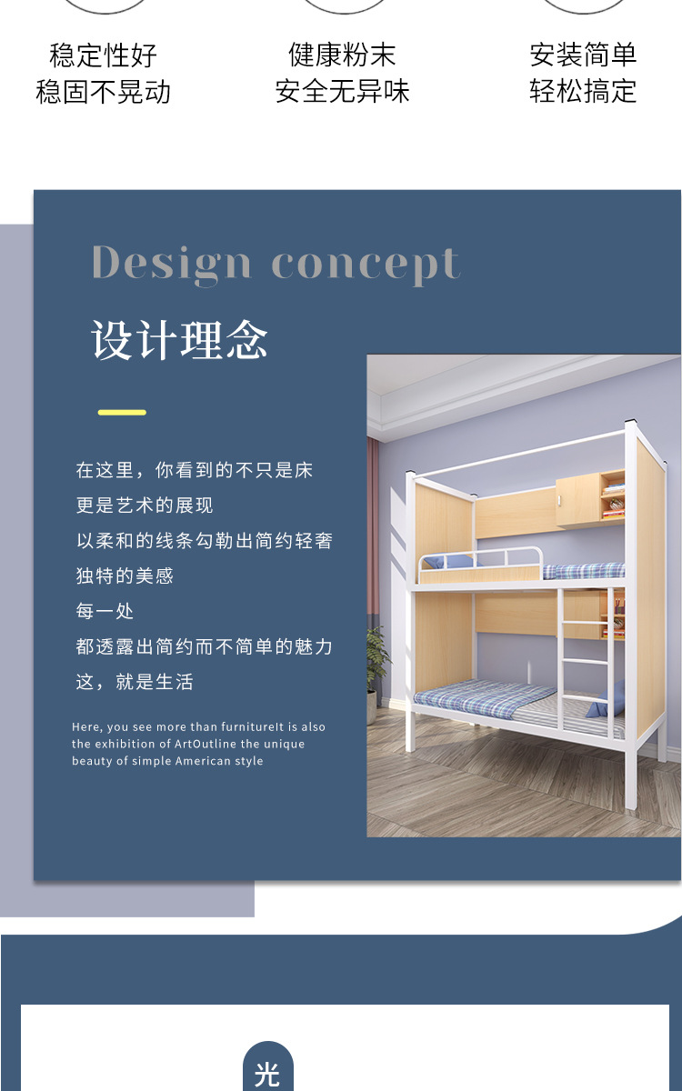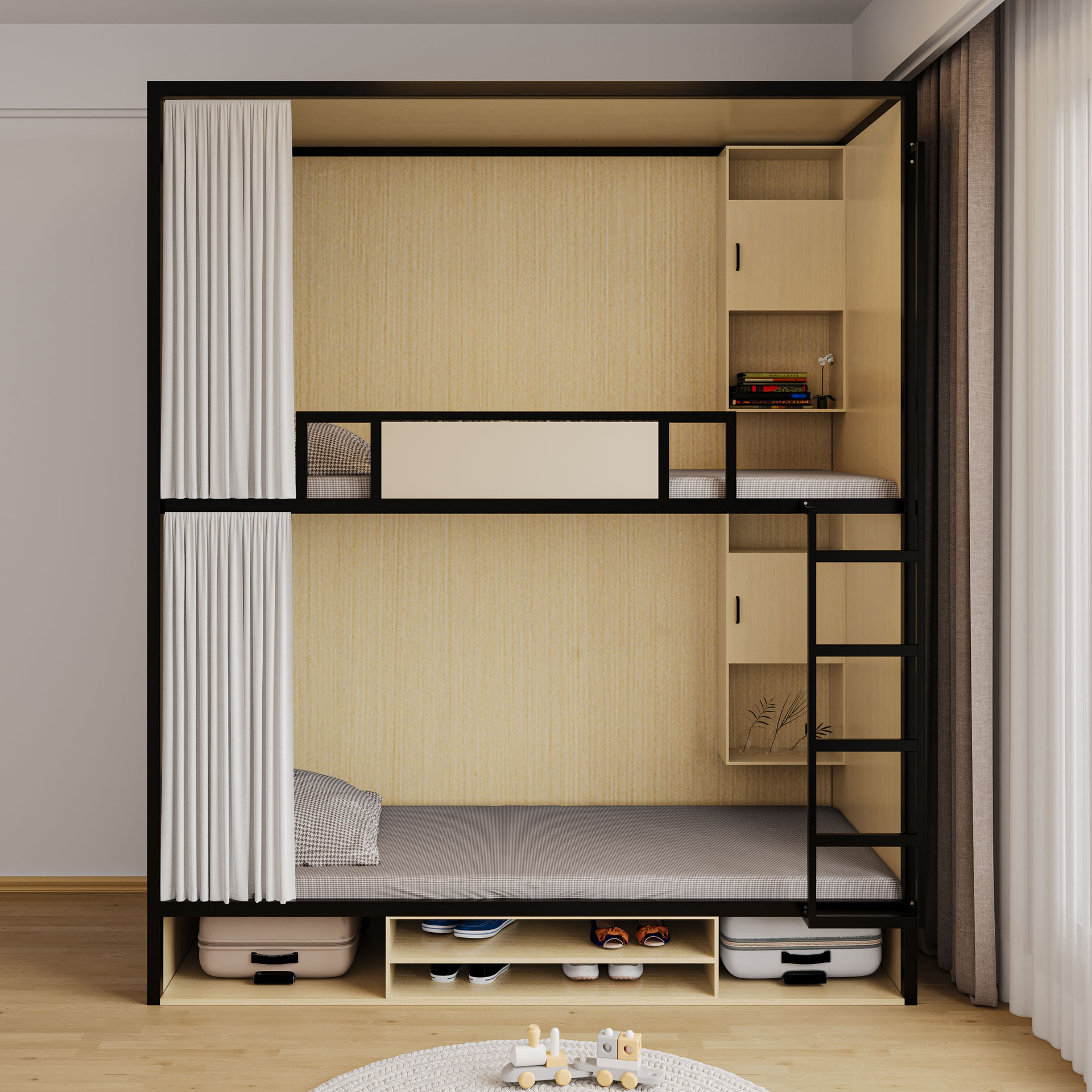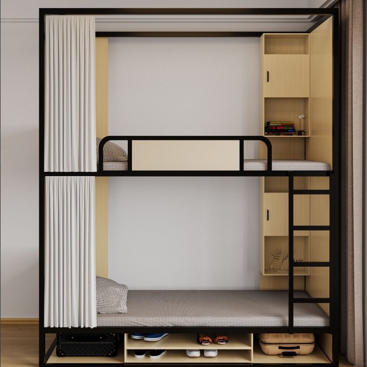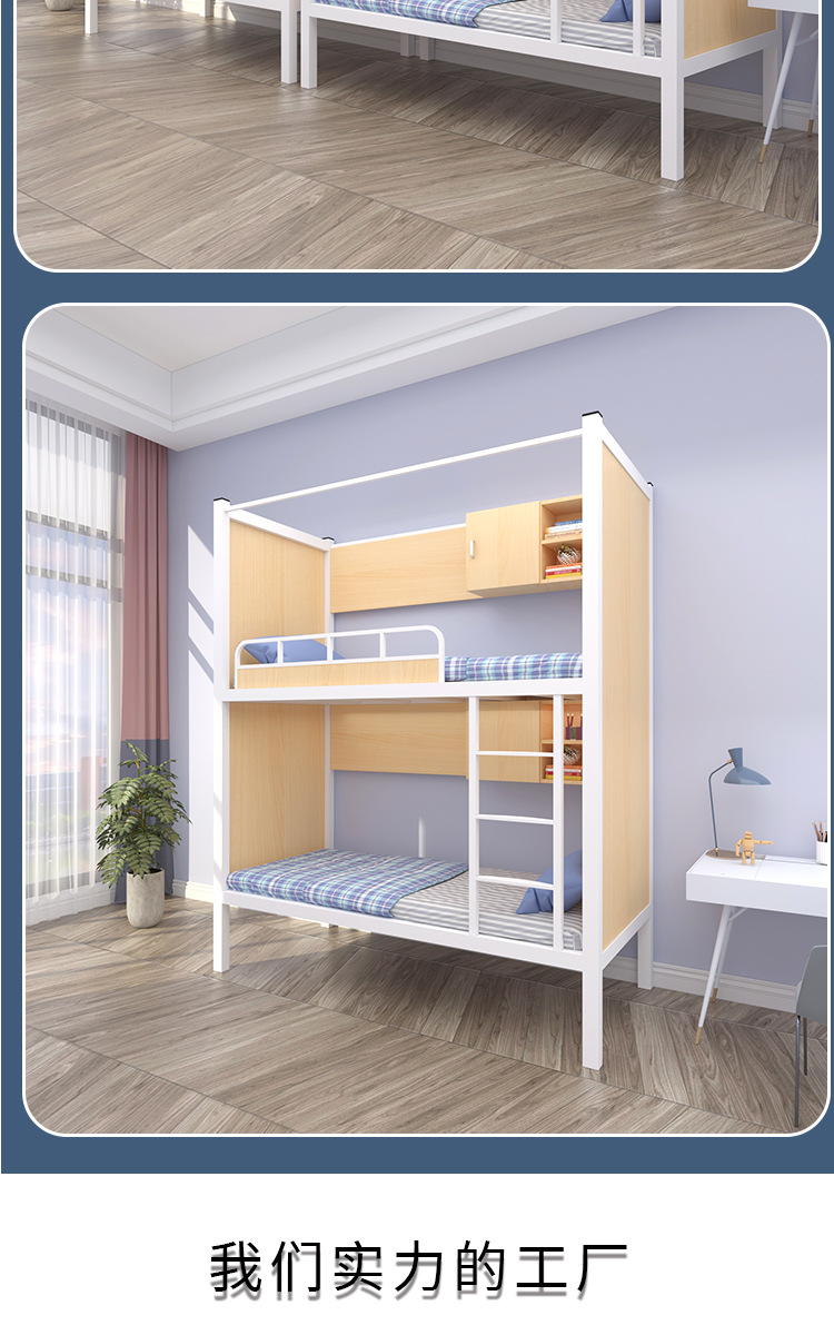 학생 기숙사 상하 이층 철침대 강철과 나무 조합 학교 기숙사 아파트 공간 캡슐 홈스테이 유스 호스텔 더블 침대
