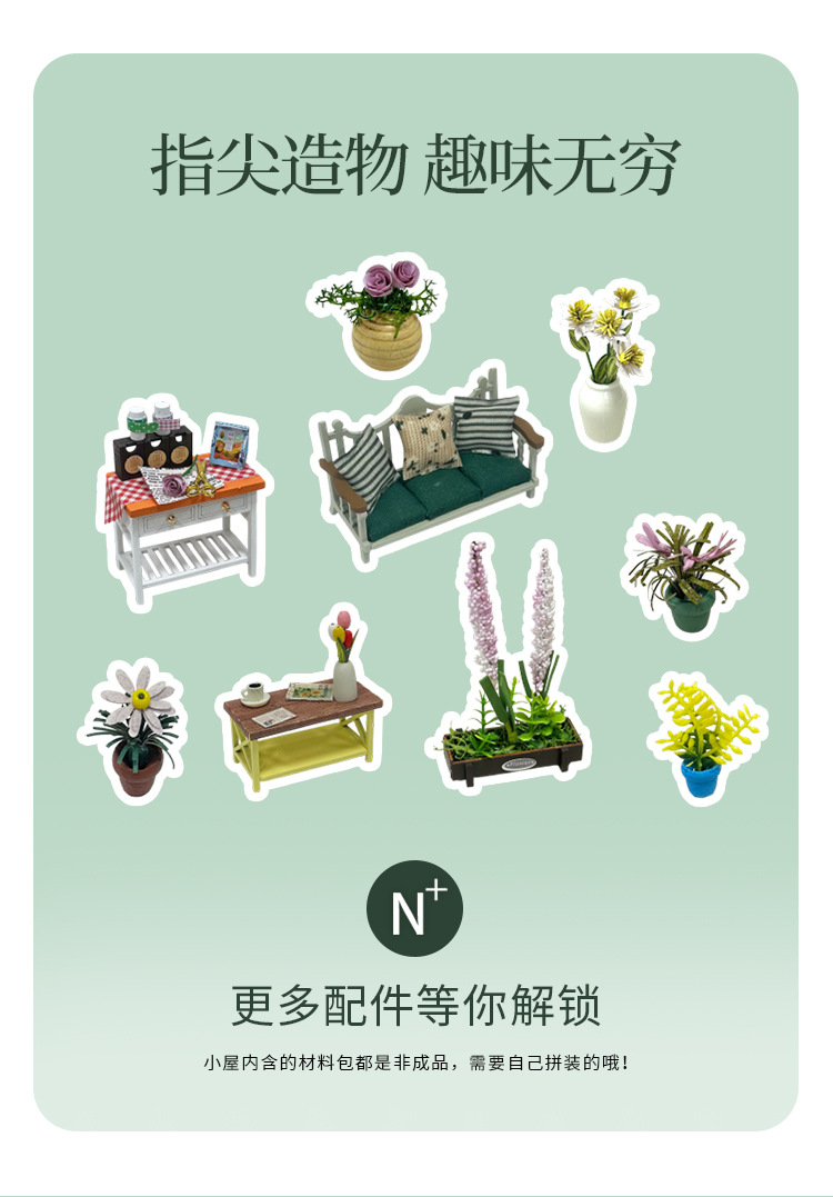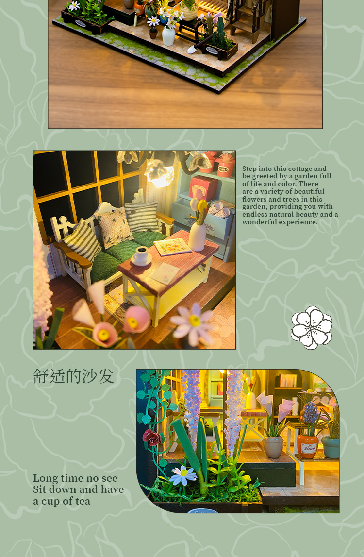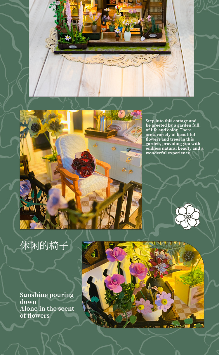 더블 데크 빌라 가든 하우스 미니 3D 빌딩 DIY 수제 나무 인형 집 조립 꽃 집 모델 영어스토어 가기