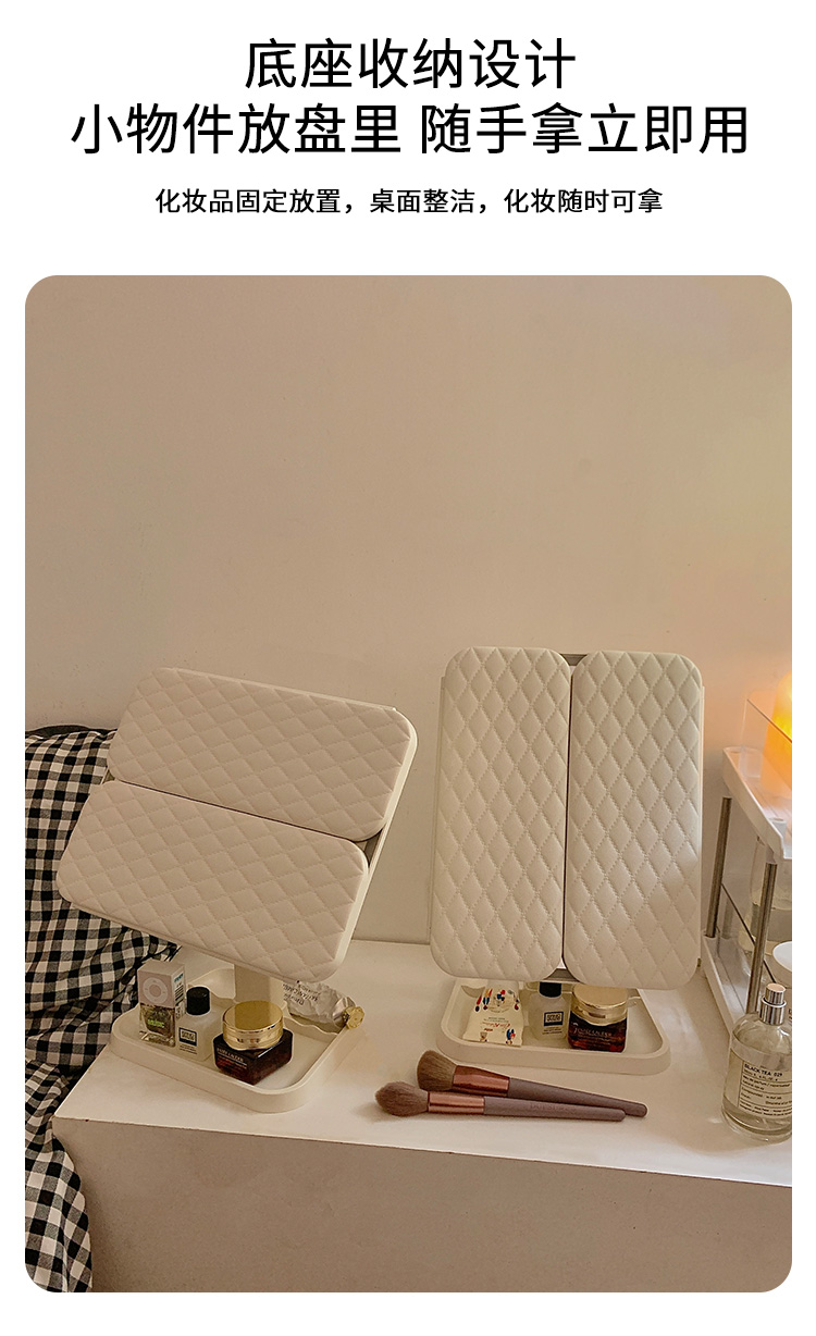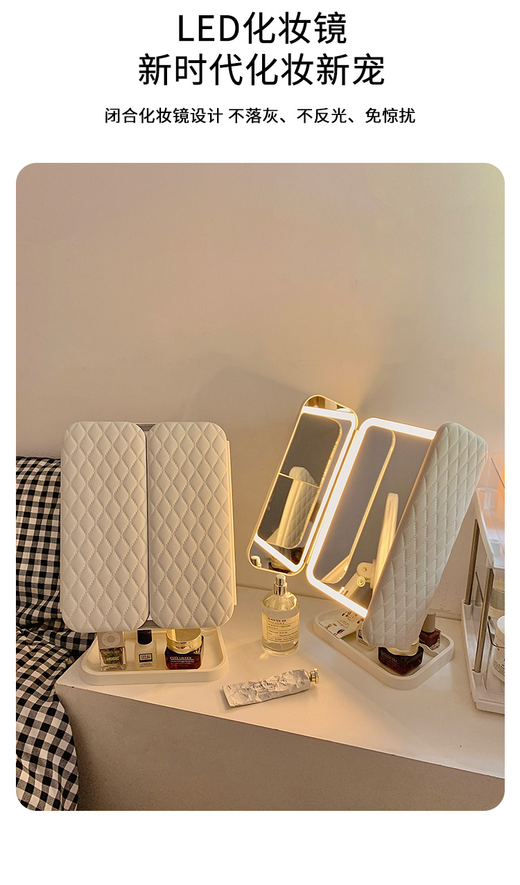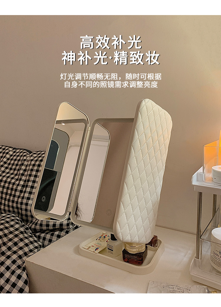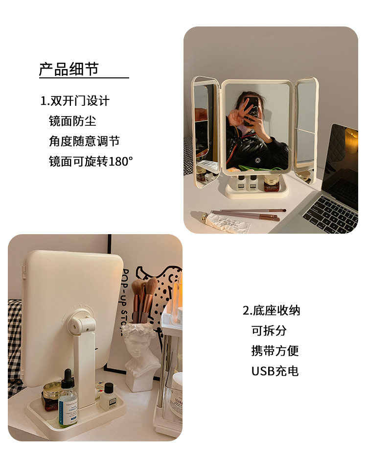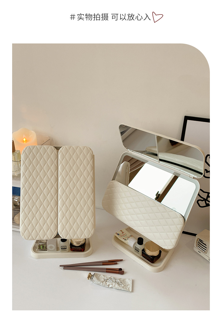 쉘 더블 도어 led 메이크업 미러 라이트 스토리지 박스 통합 데스크탑 접이식 조절 미러 Zheng