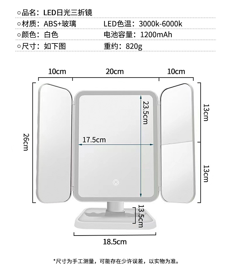 쉘 더블 도어 led 메이크업 미러 라이트 스토리지 박스 통합 데스크탑 접이식 조절 미러 Zheng스토어 가기