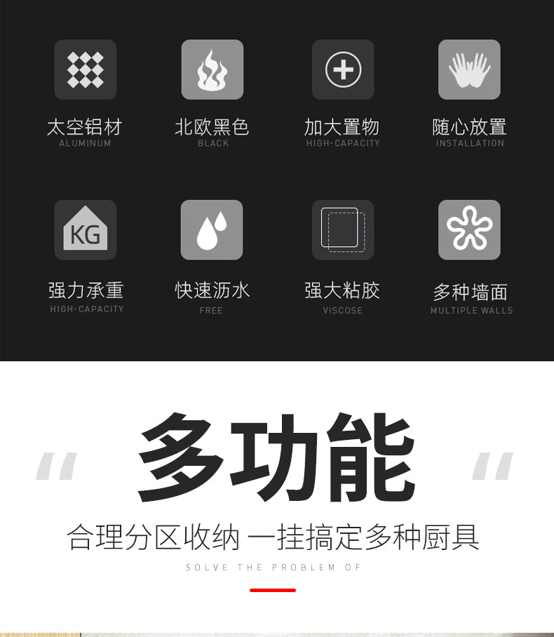 • 블랙 특대형 [업그레이드 3단] 스페이스 알루미늄 물받이, 타공/무타공 겸용⚑