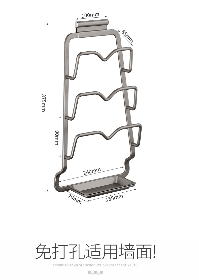 냄비 커버 랙 플레이서 주방 스토리지 랙 벽걸이 비 펀칭 커팅 보드 도마 인공 다기능 Zheng
