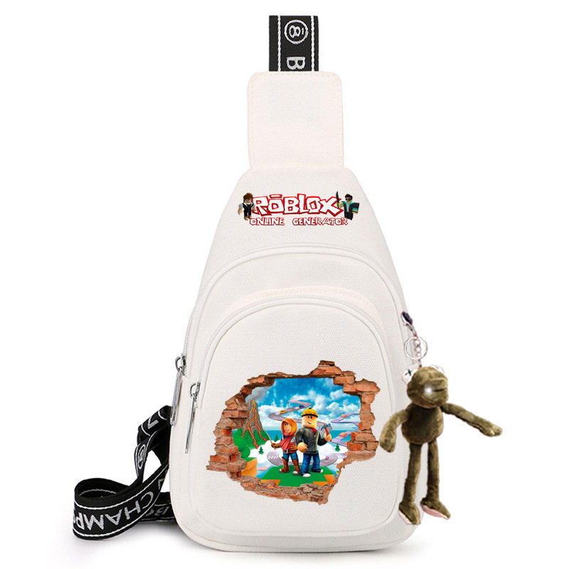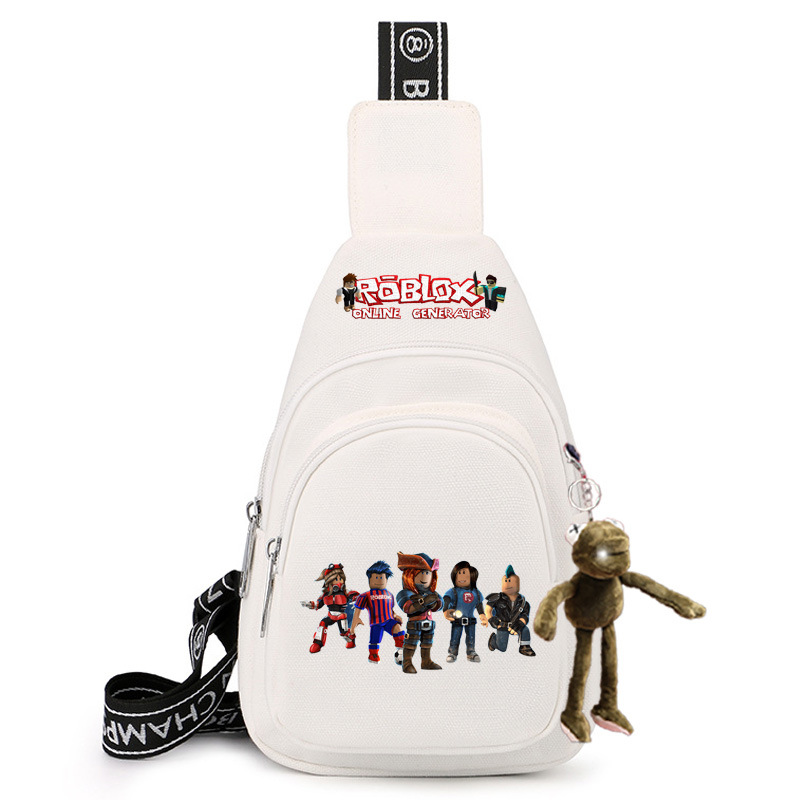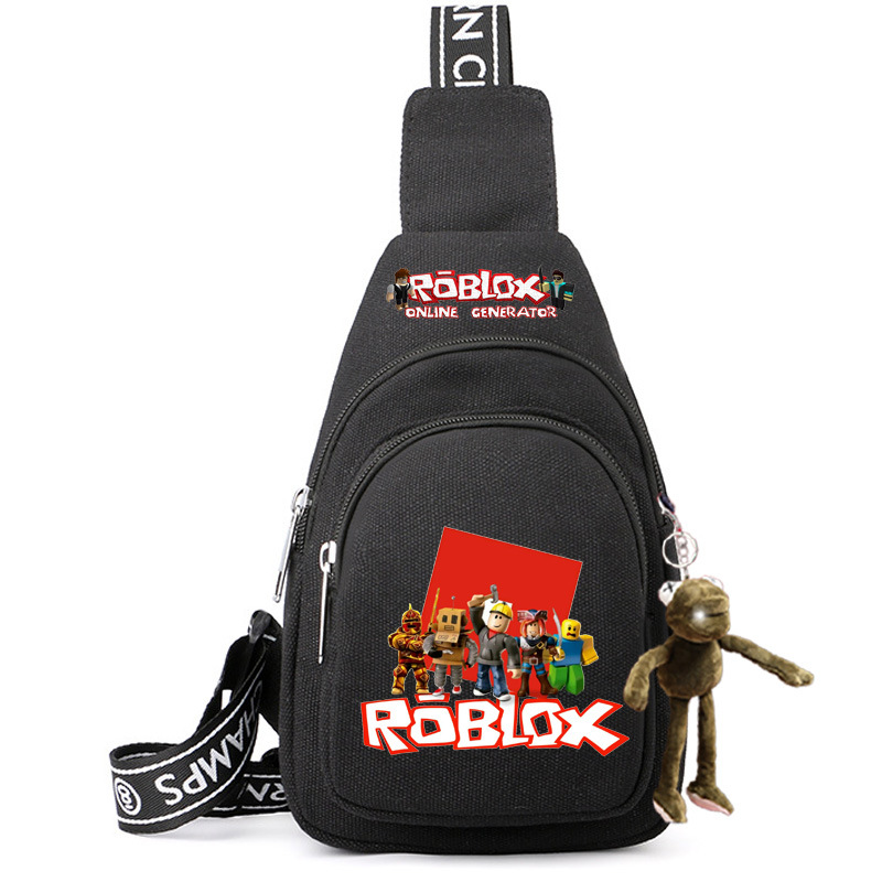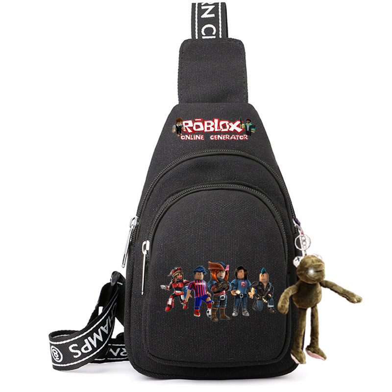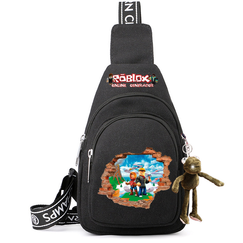 2024 패션 어린이 캔버스 작은 가슴 가방 세트 Roblox 학생과 유아를위한 귀여운 어깨 크로스 바디 백