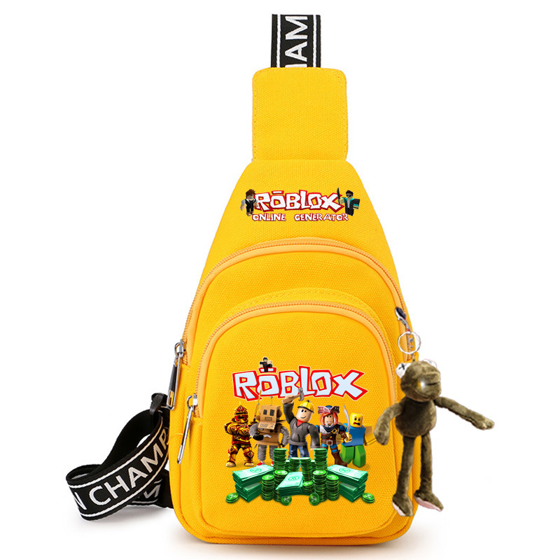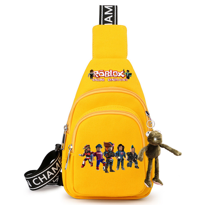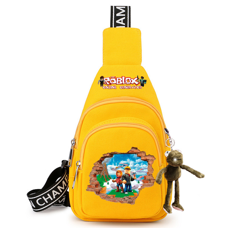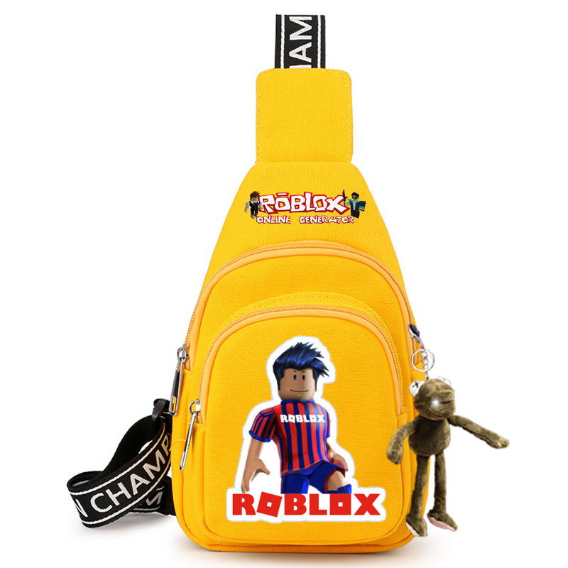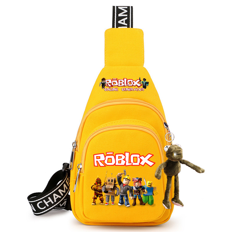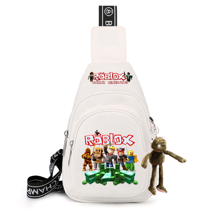 2024 패션 어린이 캔버스 작은 가슴 가방 세트 Roblox 학생과 유아를위한 귀여운 어깨 크로스 바디 백