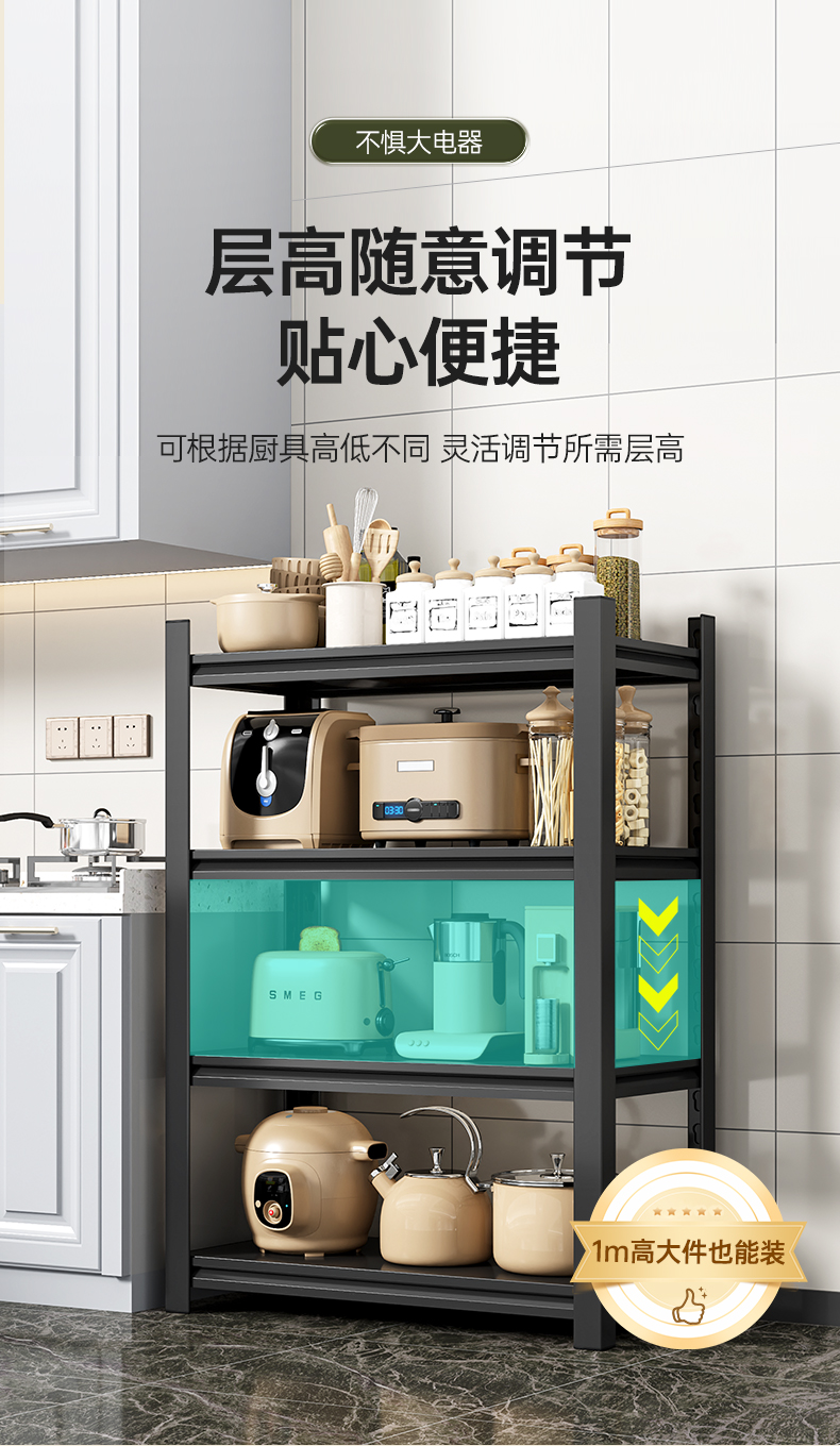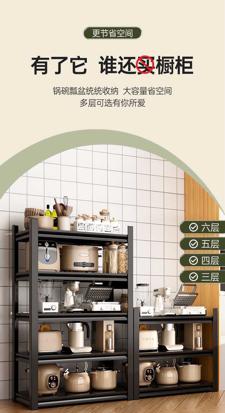 주방 스토리지 랙 바닥 다층 가정용 다기능 스토리지 랙 랙 마이크로 웨이브 오븐 랙 랙 풀 랙 베이킹 Zheng스토어 가기
