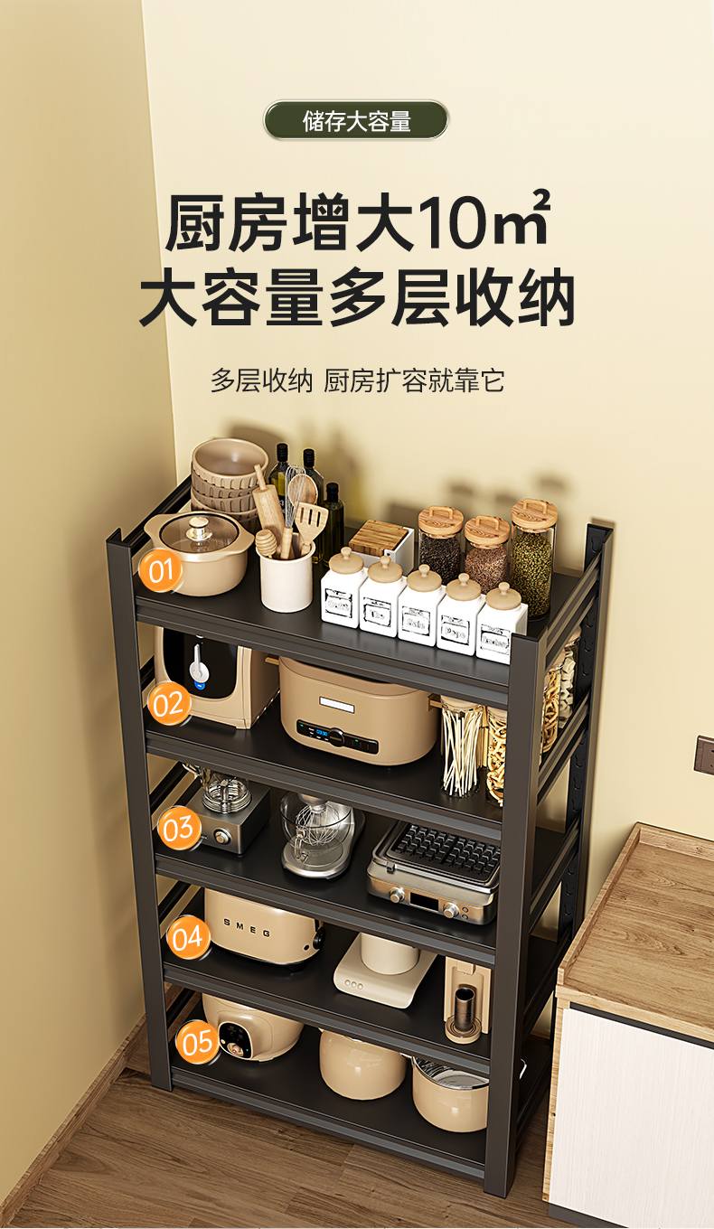 주방 스토리지 랙 바닥 다층 가정용 다기능 스토리지 랙 랙 마이크로 웨이브 오븐 랙 랙 풀 랙 베이킹 Zheng