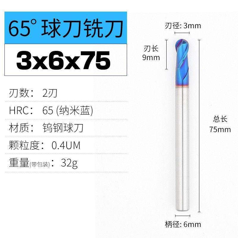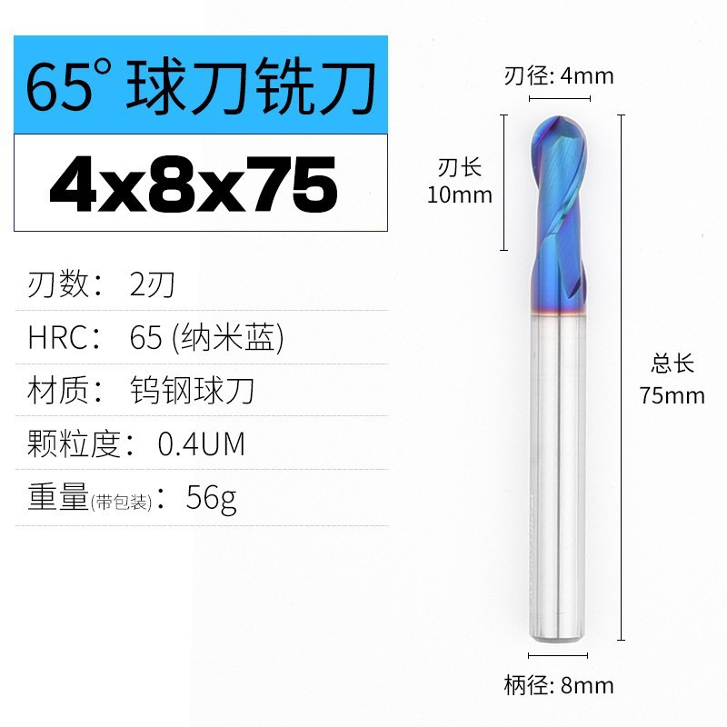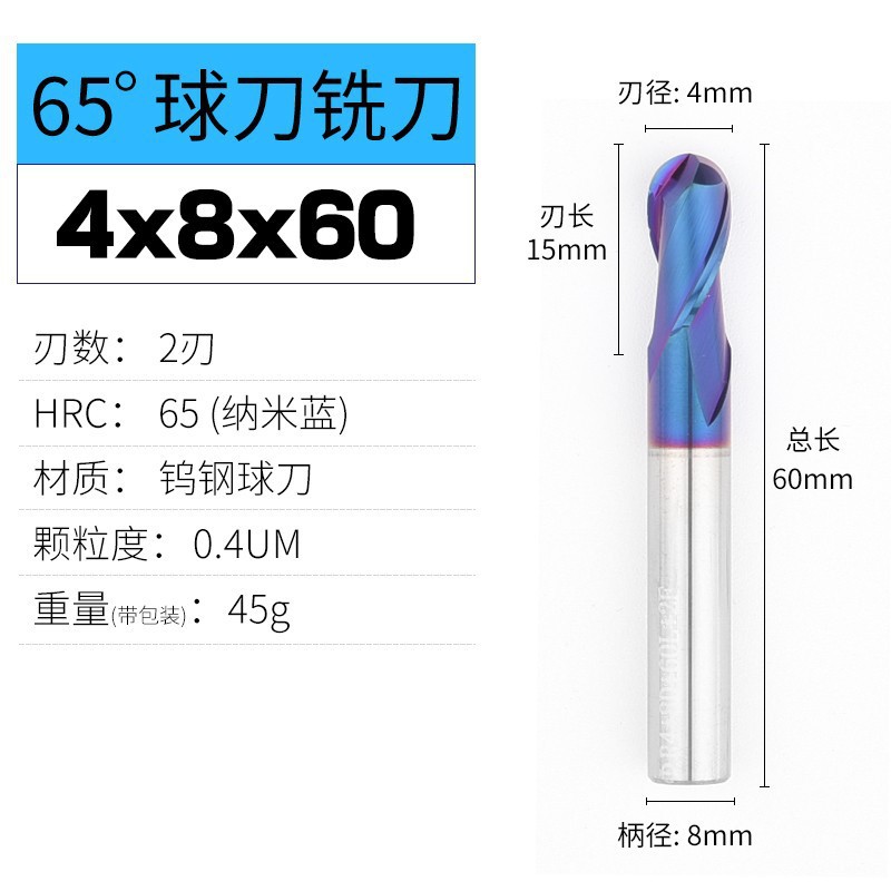 높은 하드 65 도 특수 텅스텐 강철 합금 밀링 커터 평평한 바닥 CNC 스테인레스 스틸 볼 커터 나노 코팅 확장 도구스토어 가기
