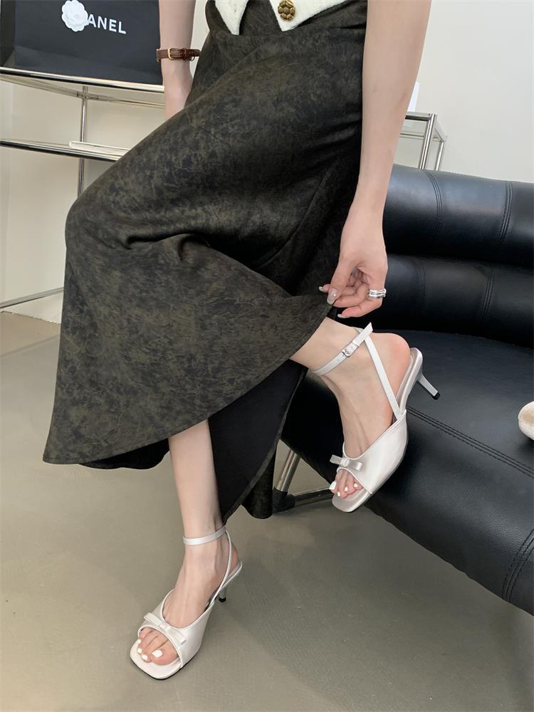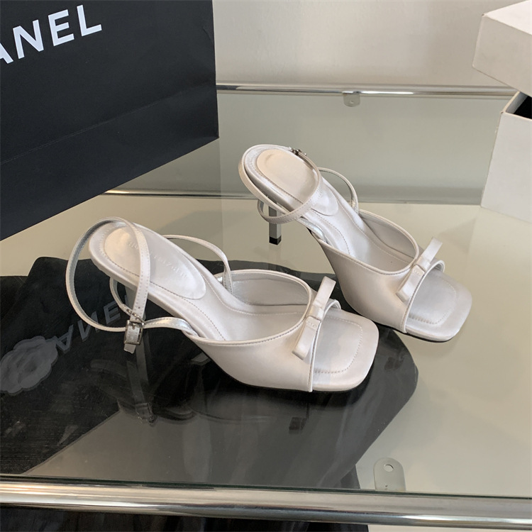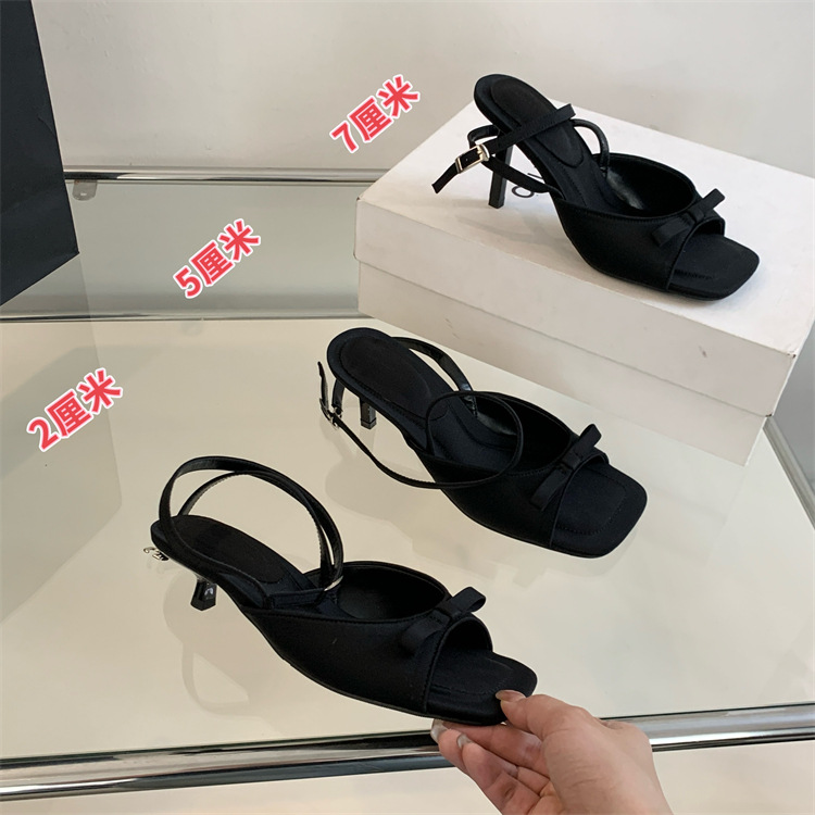 프랑스 여성 스틸레토 힐 샌들과 슬리퍼 2024 여름 활 매듭 발 버클-트립 오픈 발가락 펌프스토어 가기
