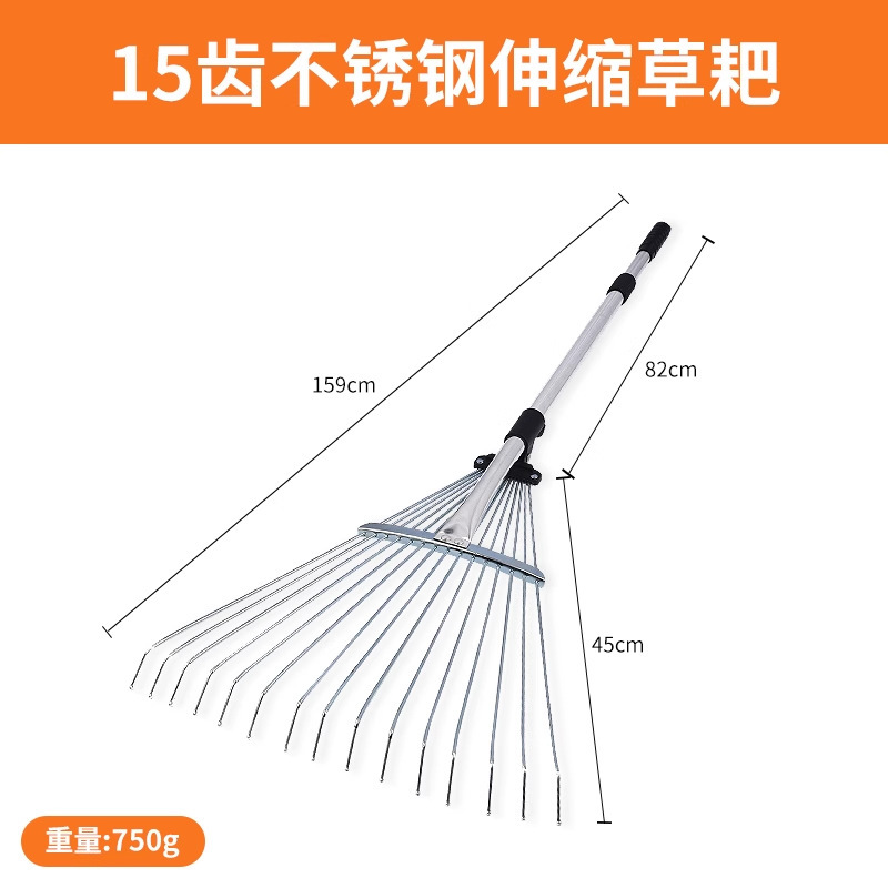 • 15개 치아 스테인레스 스틸 텔레스코픽 잔디 갈퀴*다중 치아