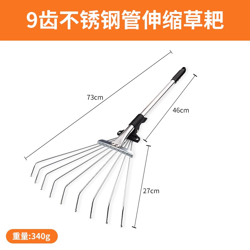• 9개 치아 스테인레스 스틸 텔레스코픽 잔디 갈퀴*다중 치아