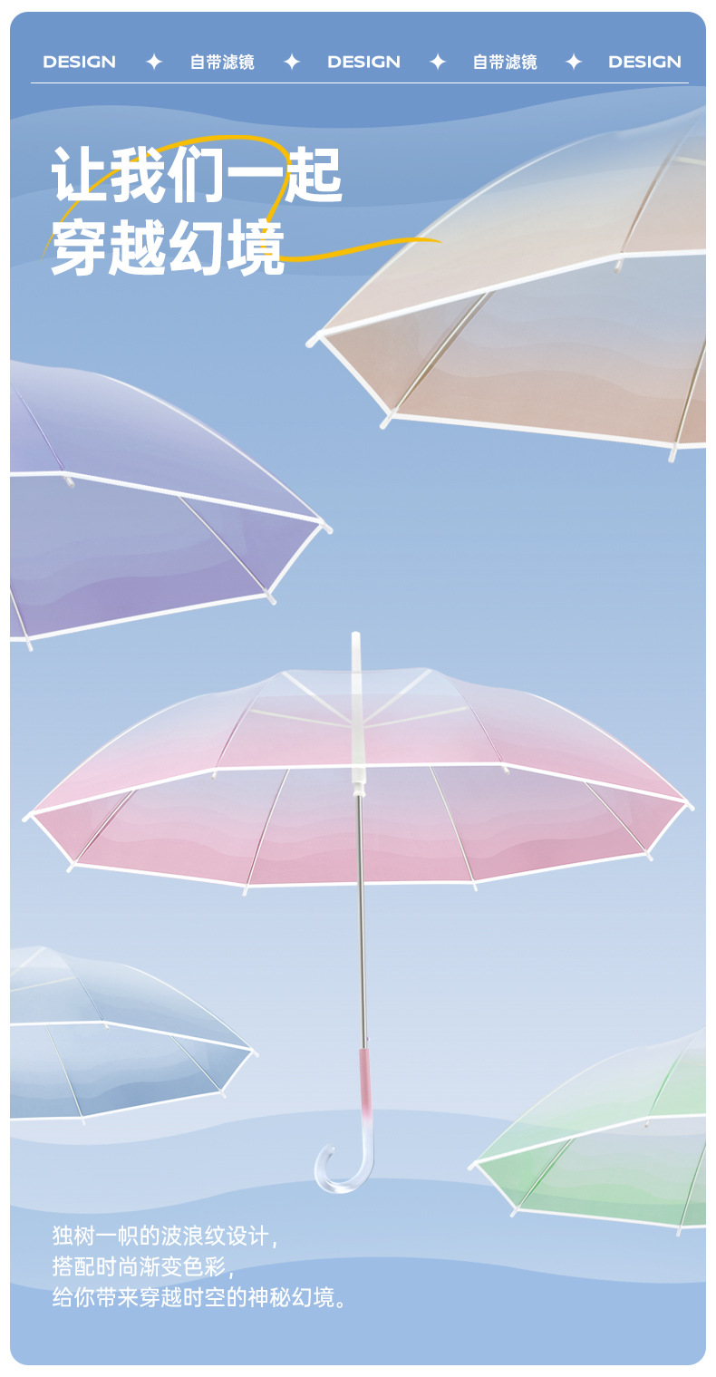 • 투명 그라데이션 스트레이트 로드 우산-한여름 파우더