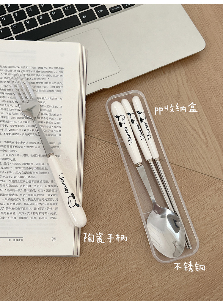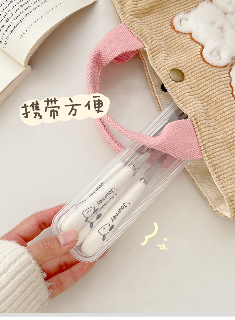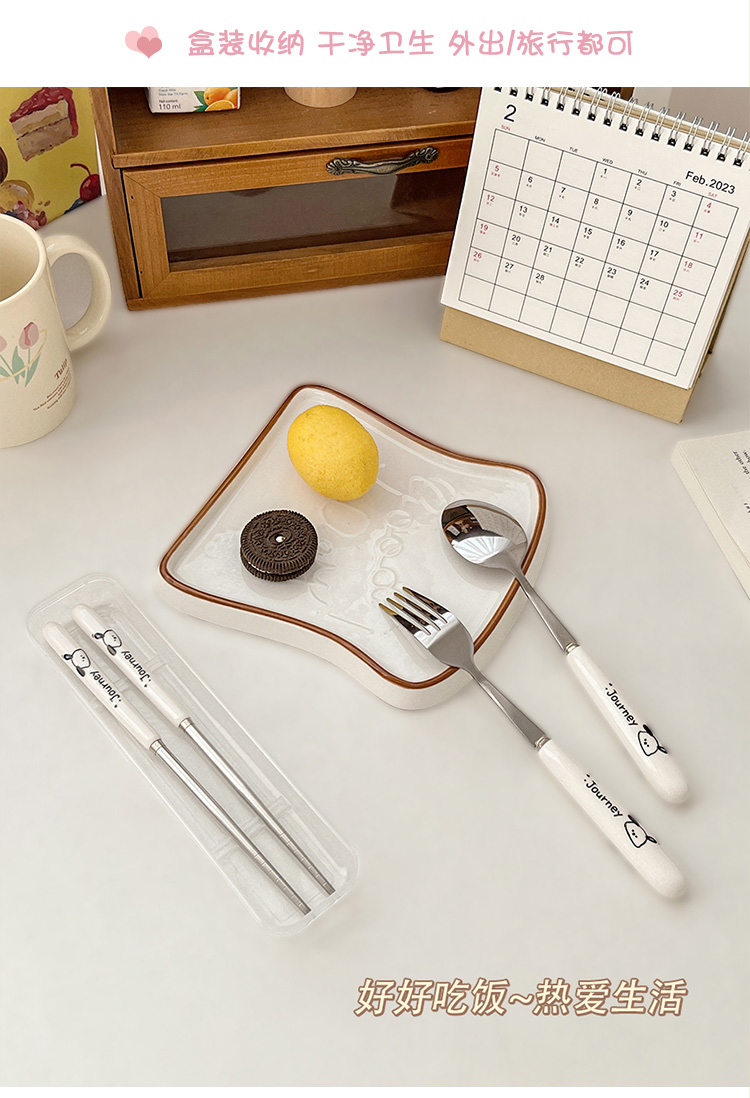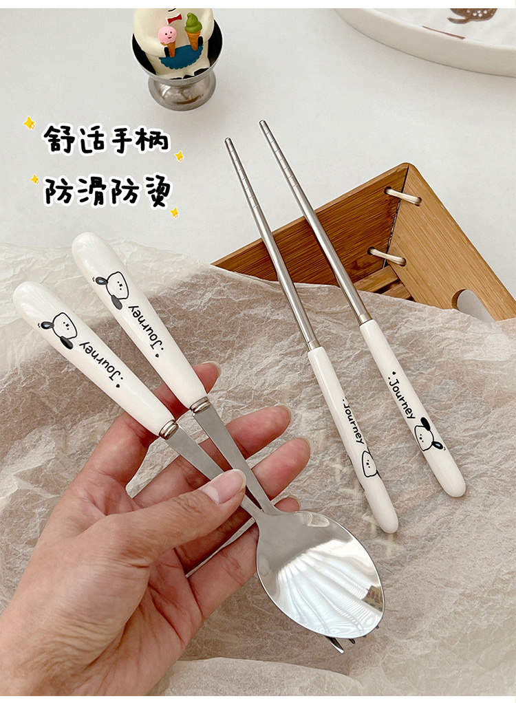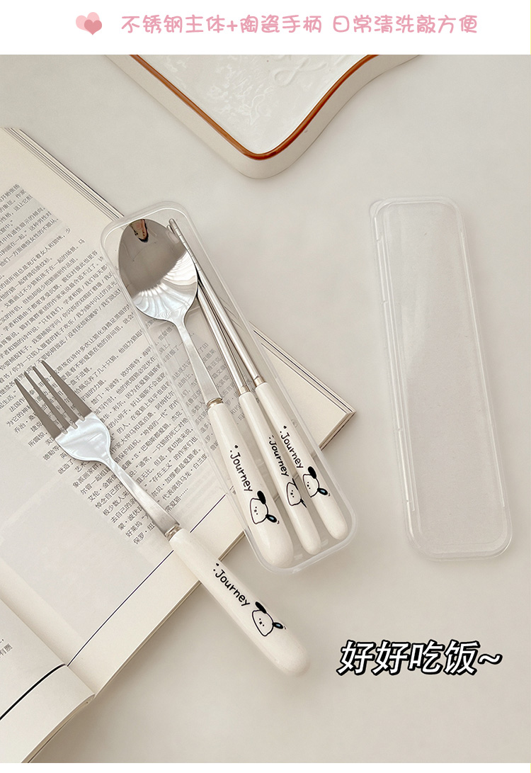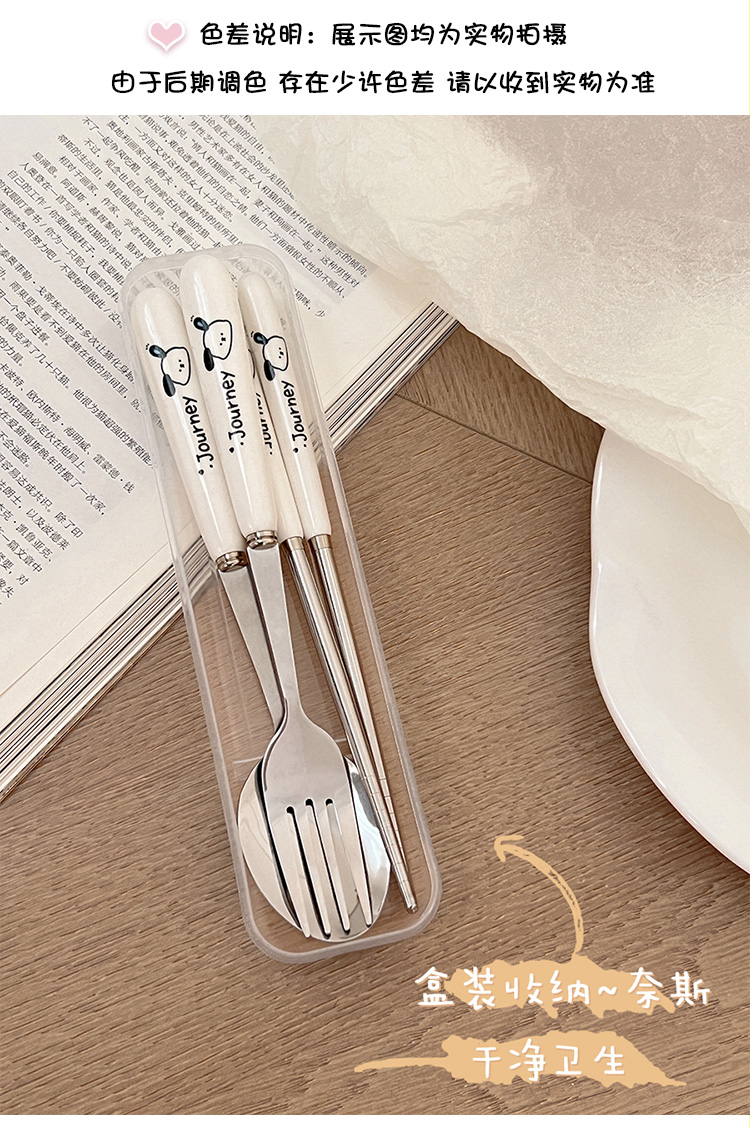 귀여운 젓가락 스푼 세트 1 인 포크 학생 스테인레스 스틸 식기 보관 상자 세트 3 휴대용 정