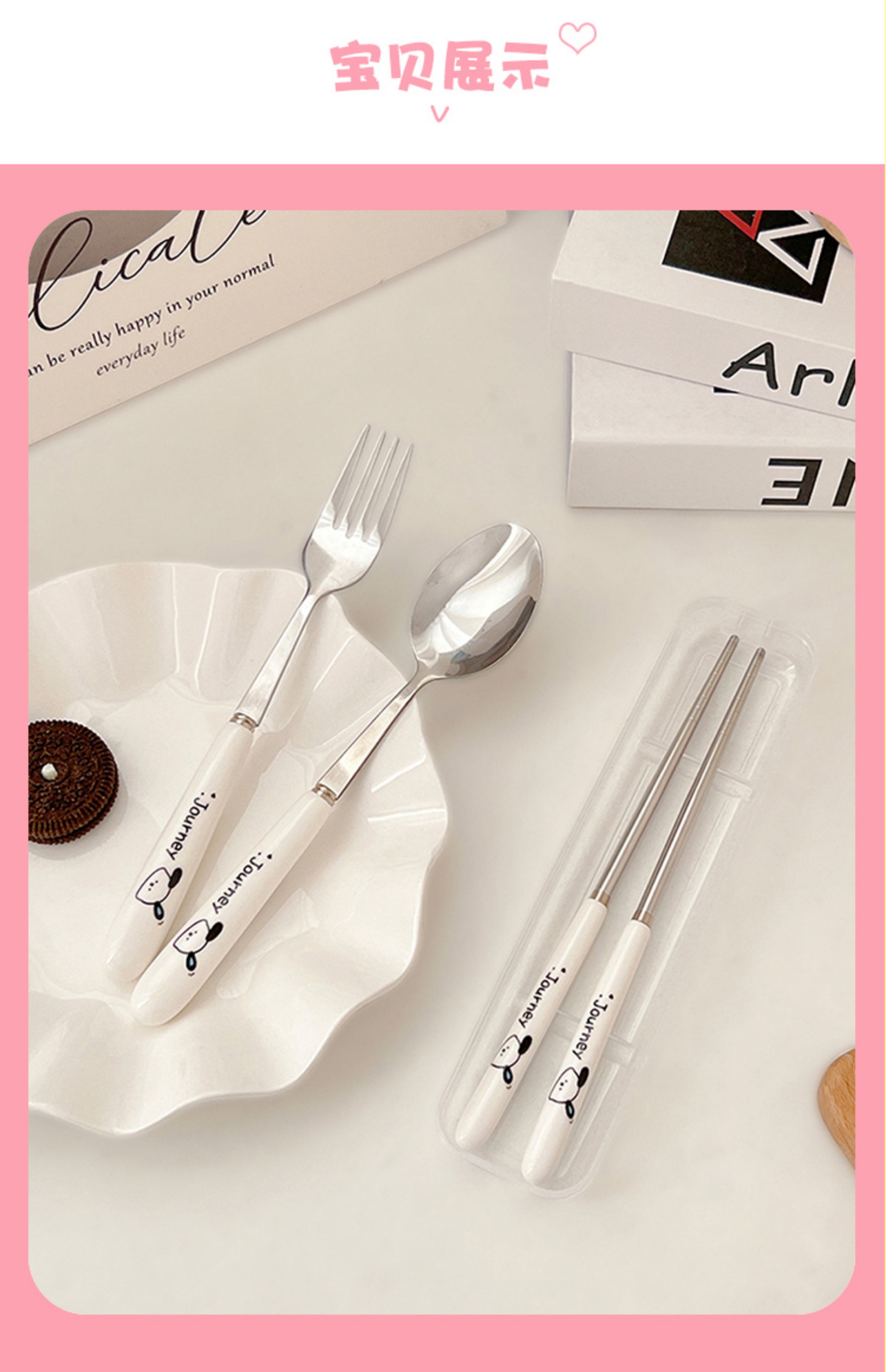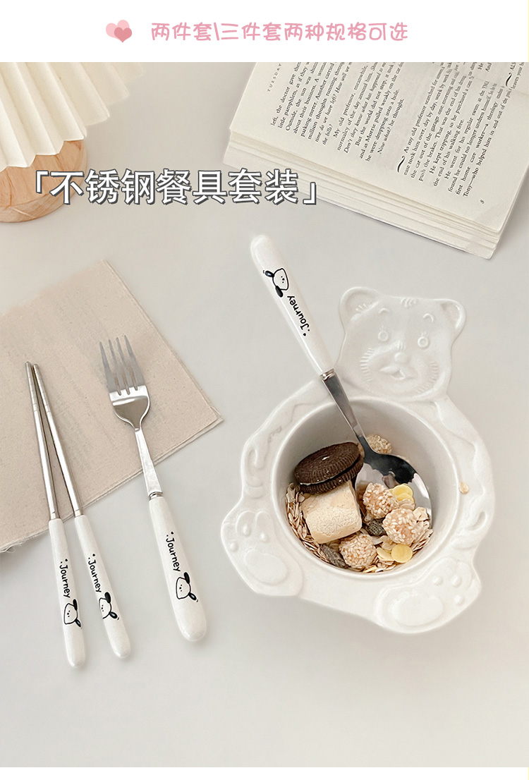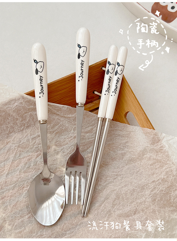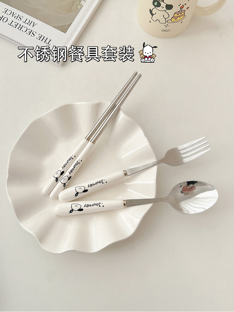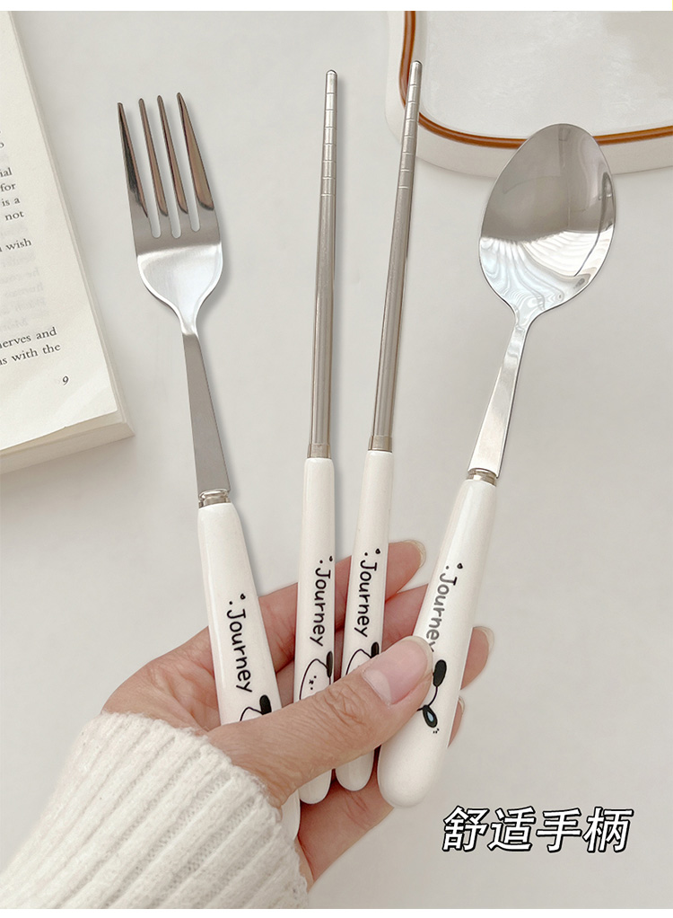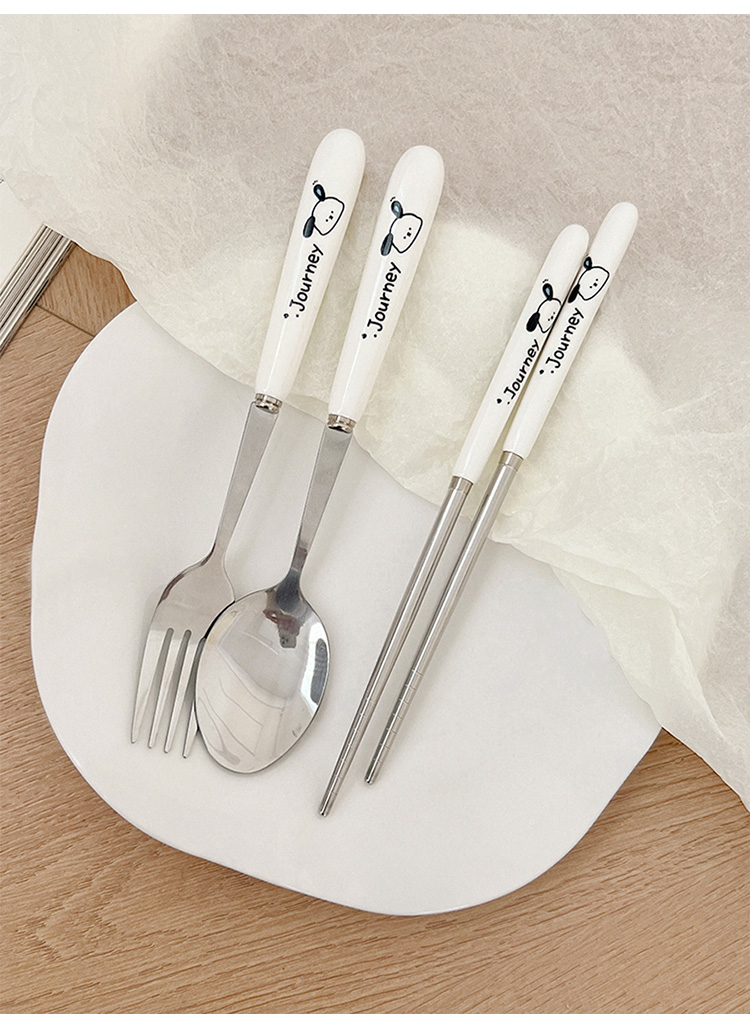 귀여운 젓가락 스푼 세트 1 인 포크 학생 스테인레스 스틸 식기 보관 상자 세트 3 휴대용 정