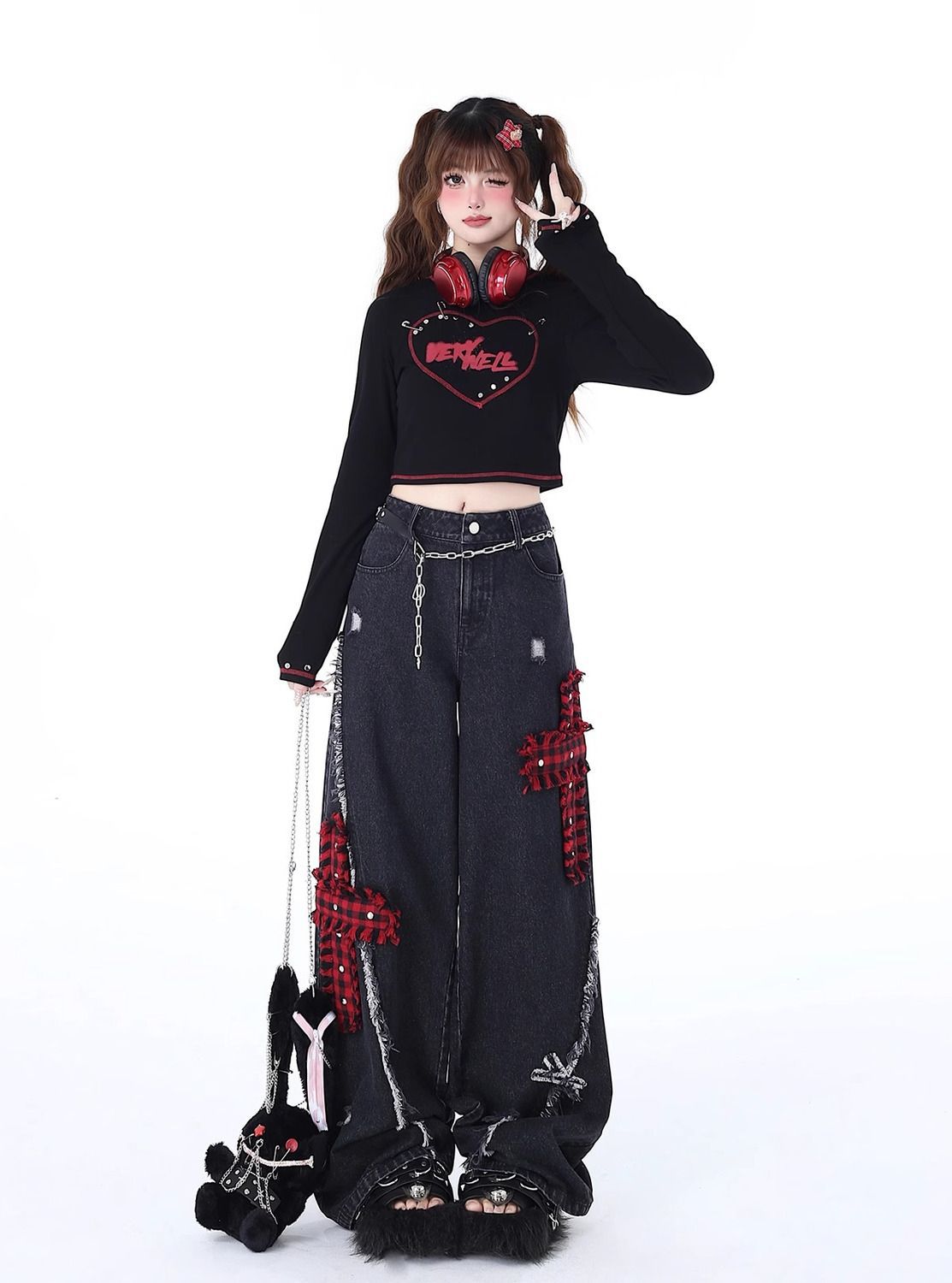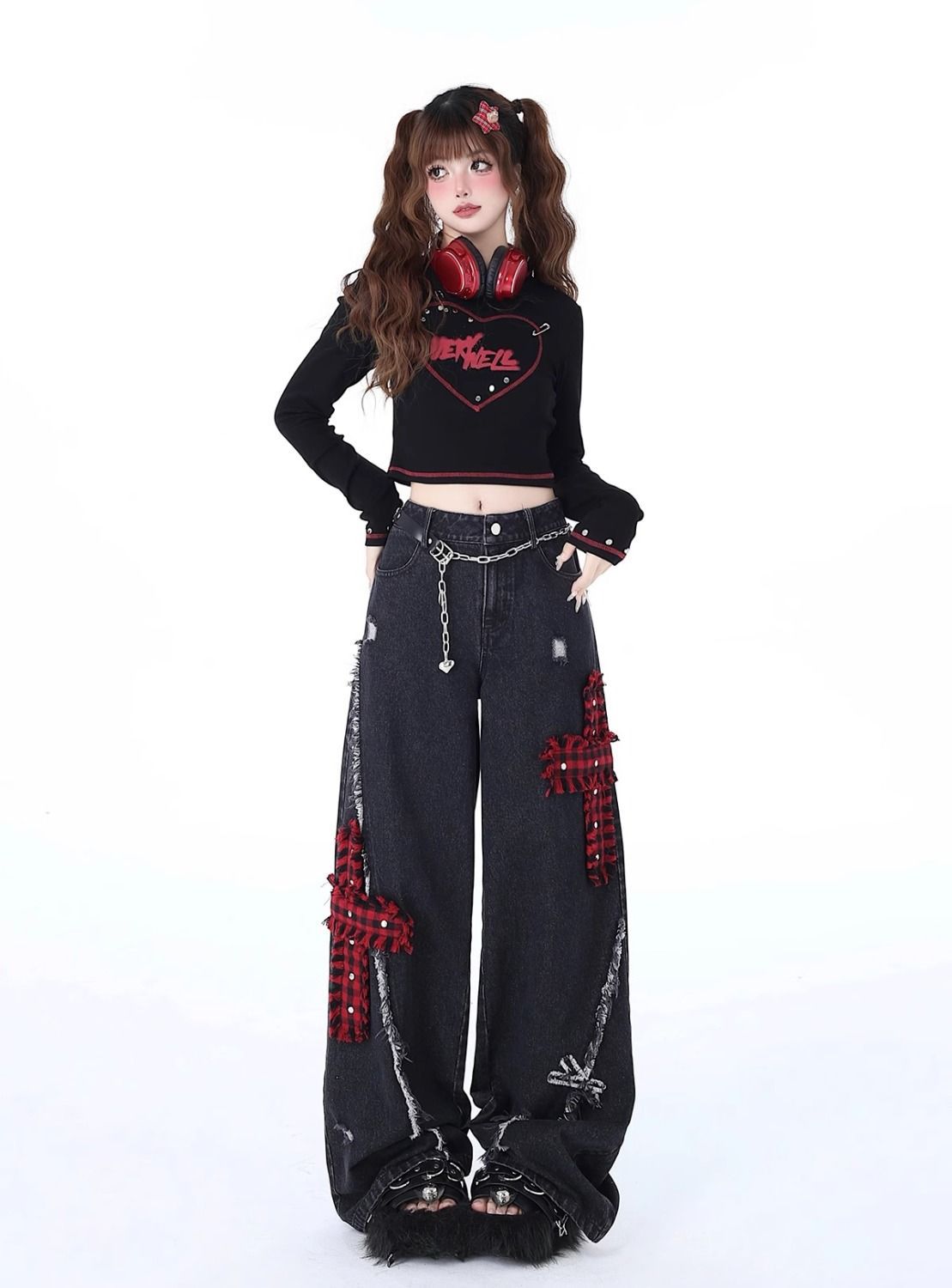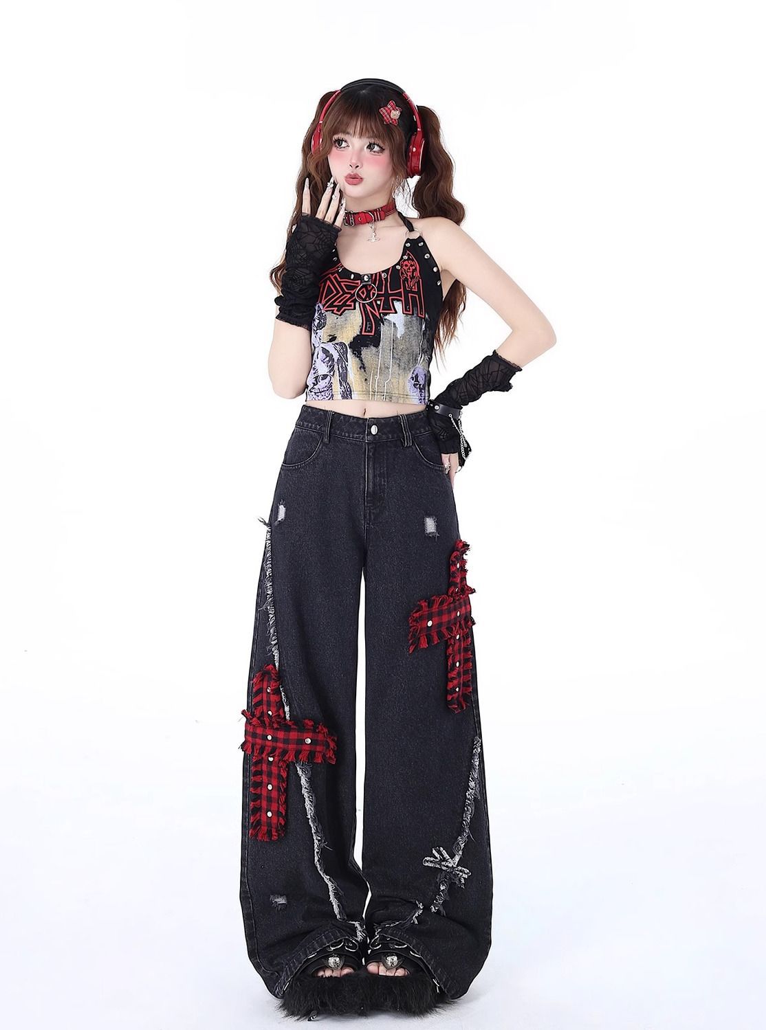 Rock Punk Ripped Straight Leg Jeans 여성용 봄 새로운 높은 허리 느슨한 펜던트스토어 가기