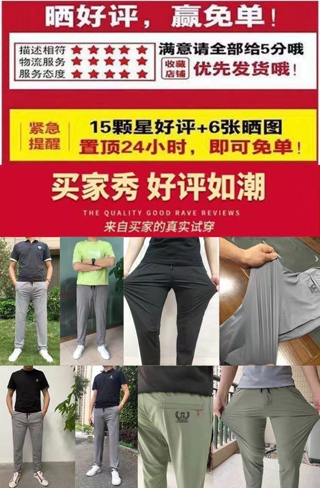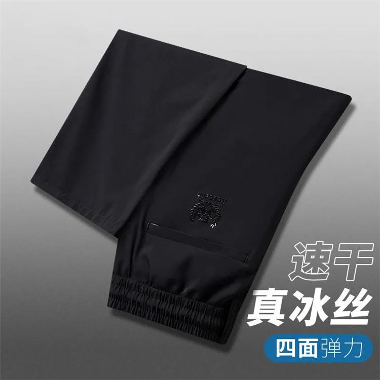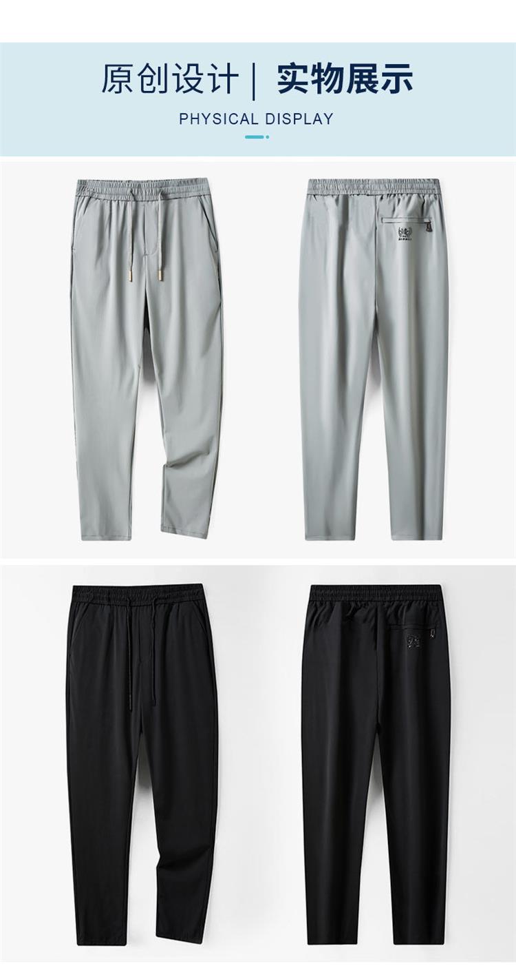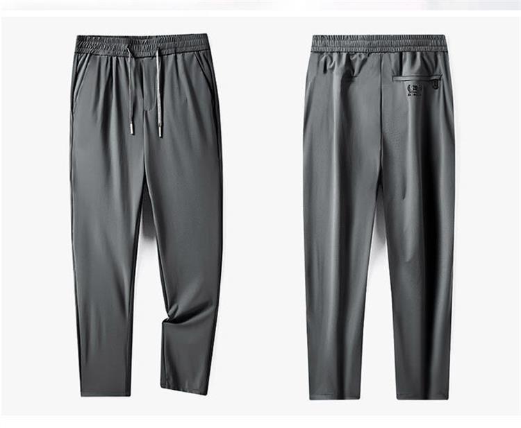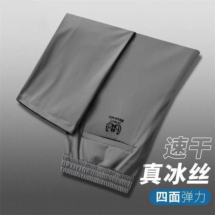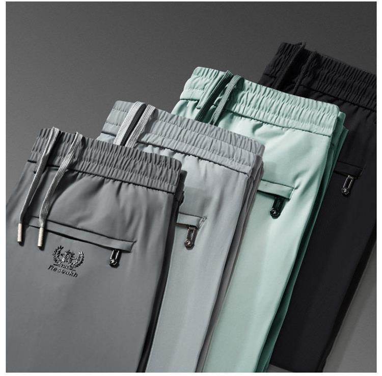 여름 얇은 스포츠 바지 운동복 남자 하이 엔드 스트레이트 아이스 실크 통기성 탄성 중년 캐주얼 바지 정스토어 가기
