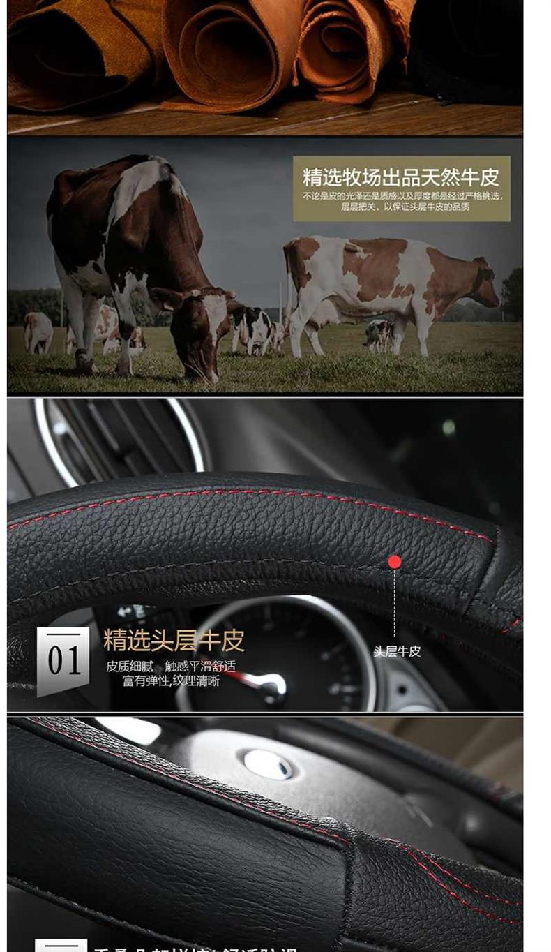 [울링 스페셜] 자동차 핸들 스티어링 휠 커버 손으로 꿰매는 가죽 스티어링 휠 커버 울리는 영광 작은 카롱
