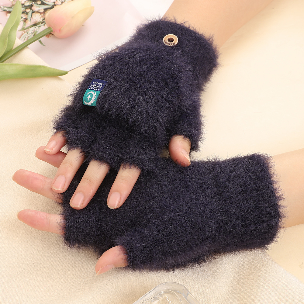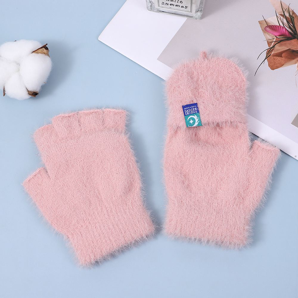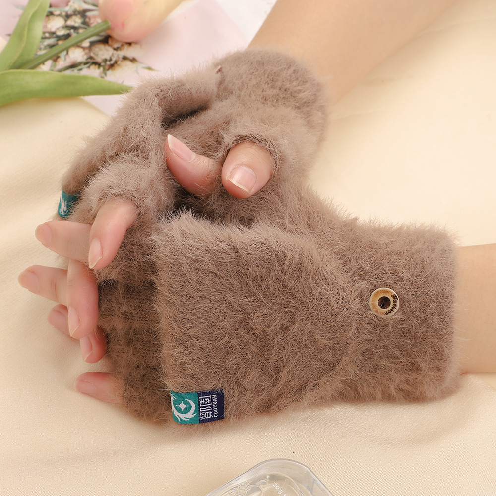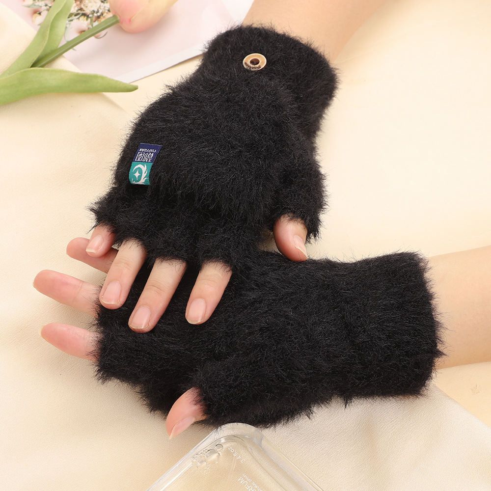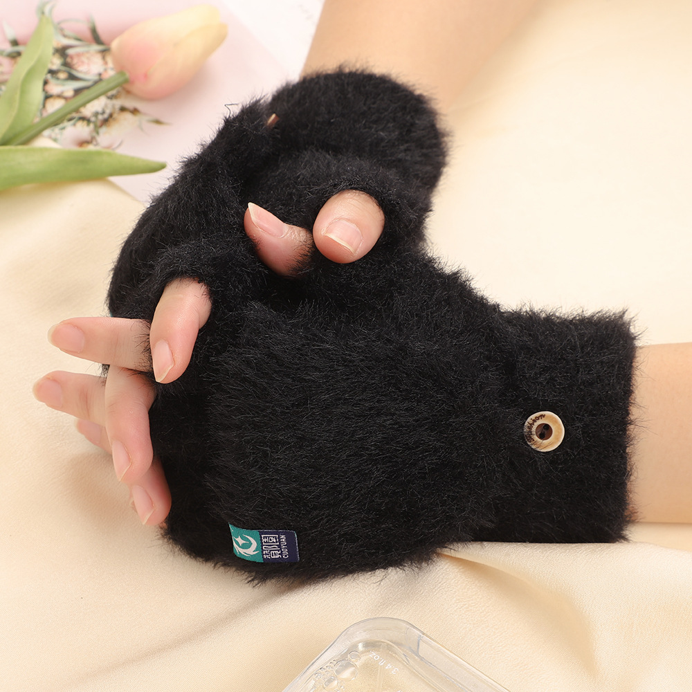 방풍 봉제 장갑 여성의 겨울 따뜻한 학생의 손가락 노출 플립 커버 장갑 야외 반 손가락 두꺼운 글쓰기 장갑