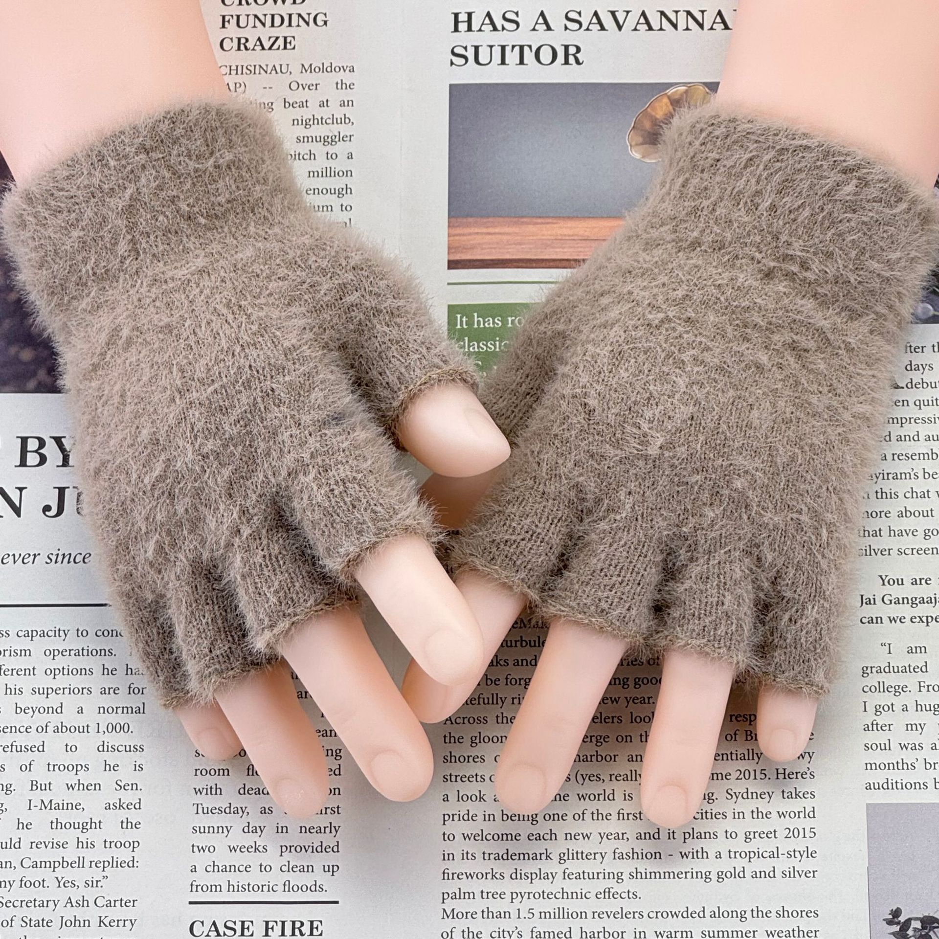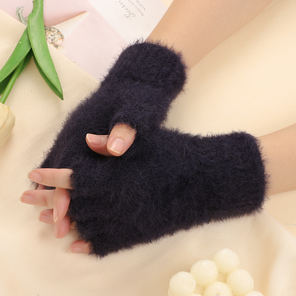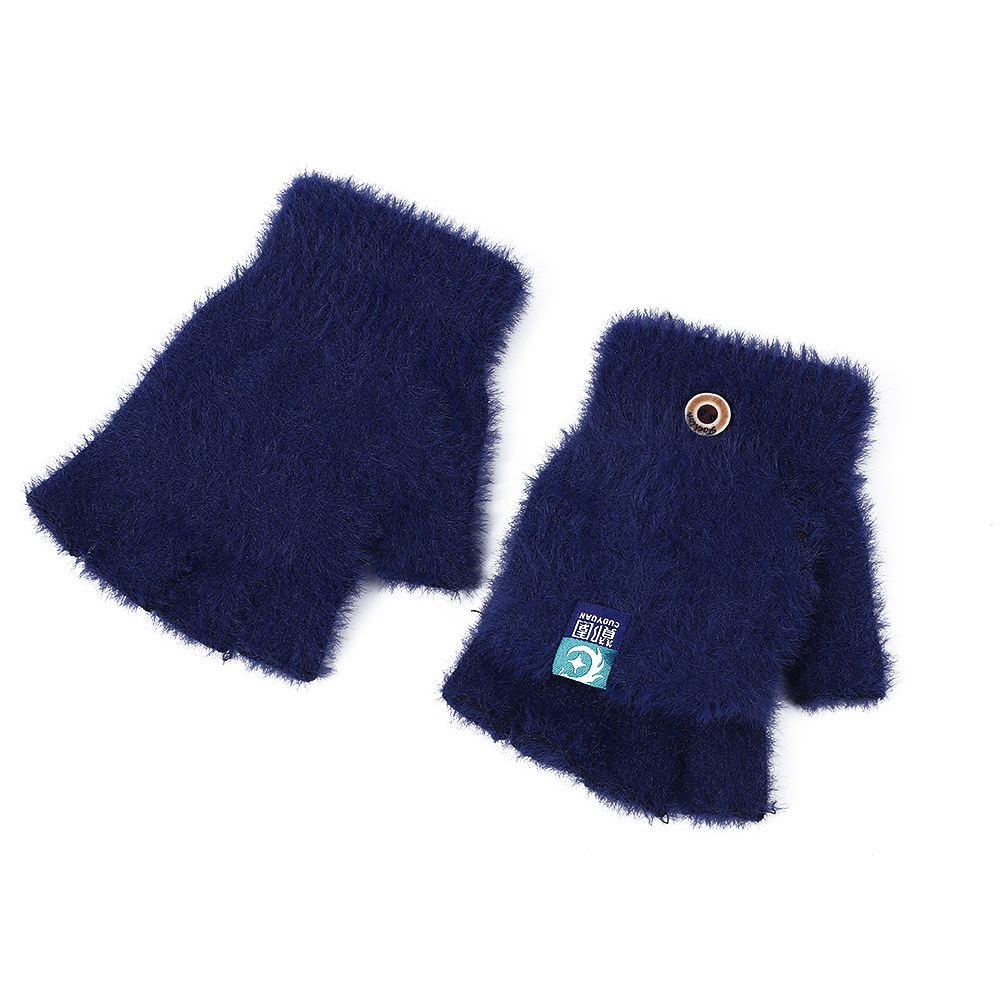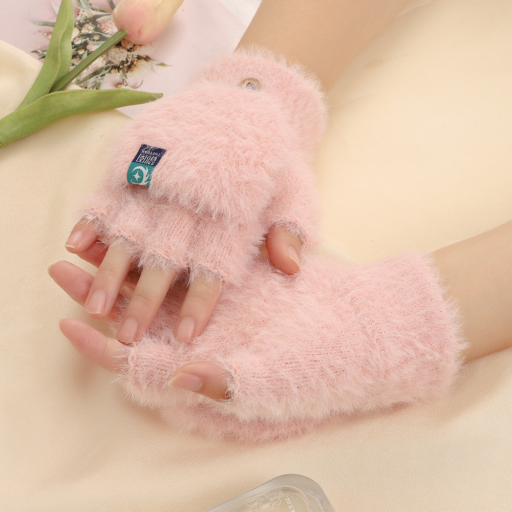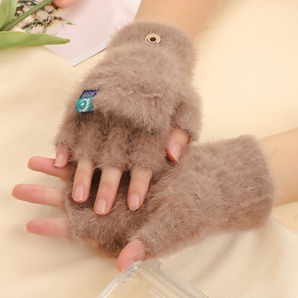 방풍 봉제 장갑 여성의 겨울 따뜻한 학생의 손가락 노출 플립 커버 장갑 야외 반 손가락 두꺼운 글쓰기 장갑