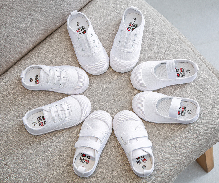 캠퍼스 흰색 신발 봄과 가을 어린이 캔버스 신발 유치원 소년 소녀 학생 흰색 헝겊 신발 아기 부드러운 단독 실내스토어 가기