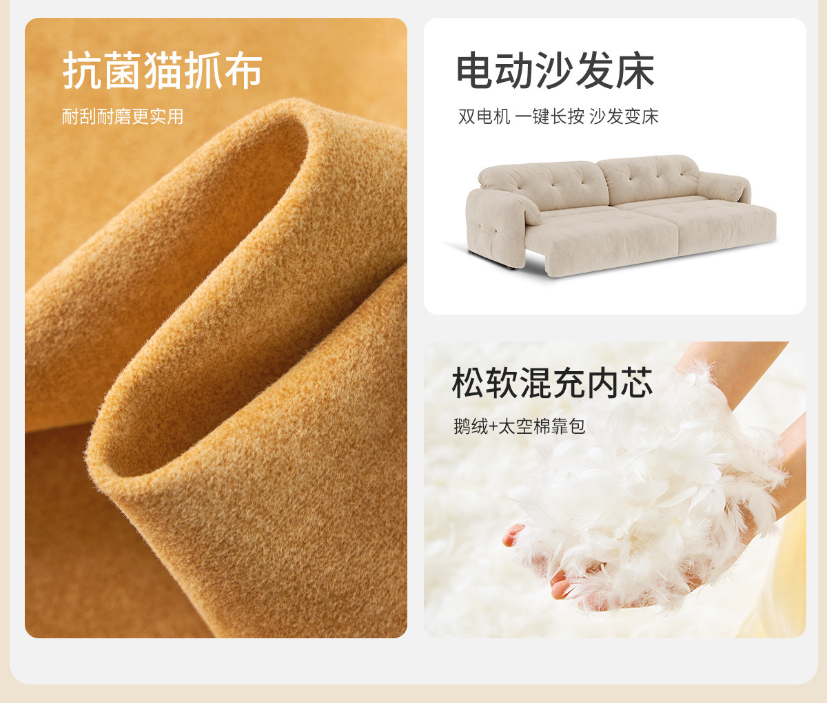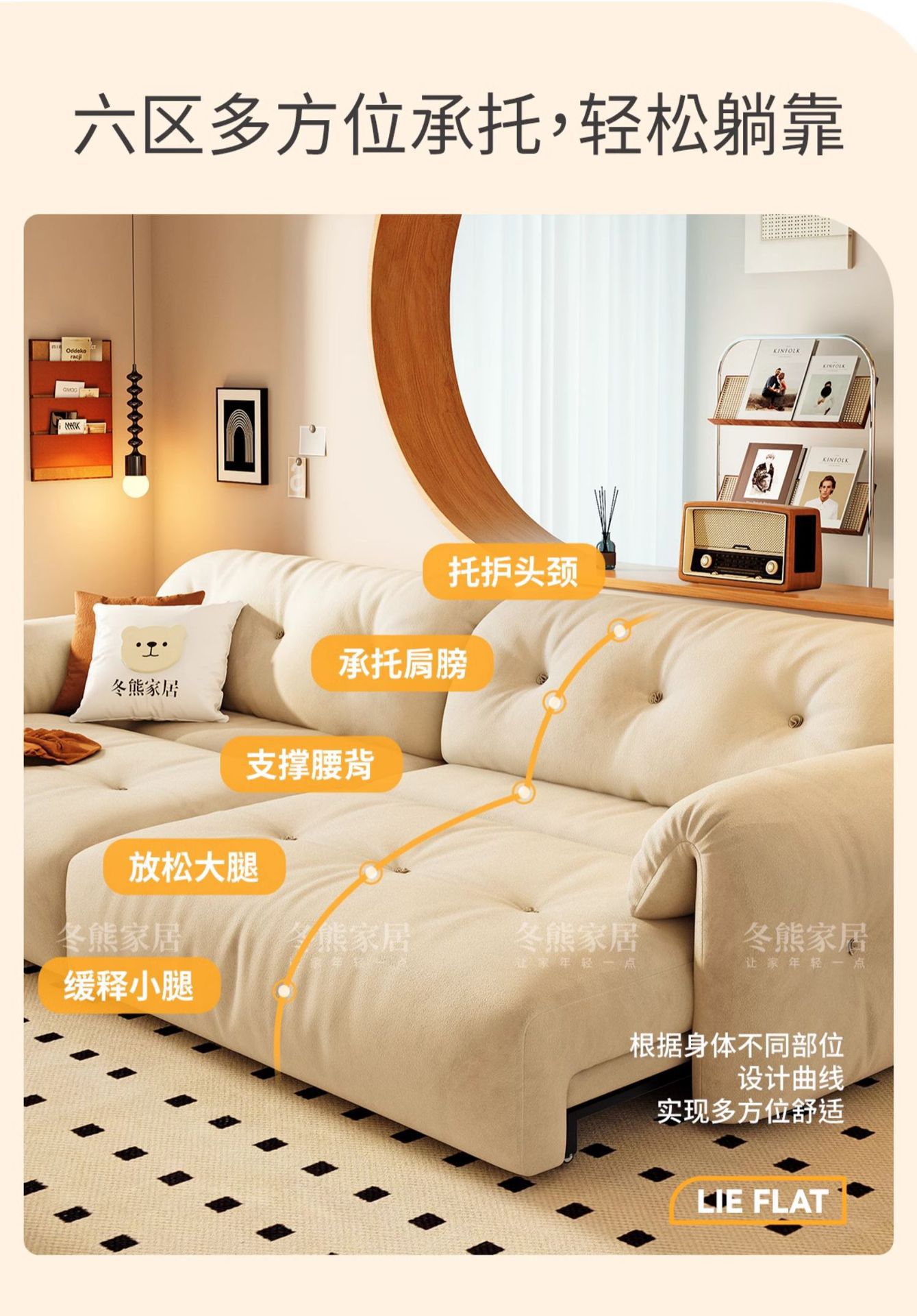 작은 아파트를 위한 통유 특별한 구름 거실 간단한 현대 망원경 크림 스타일 직물 다기능 전기 소파 침대스토어 가기