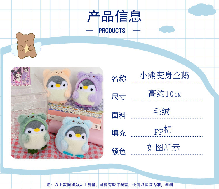 국경을 넘는 인기 펭귄 인형, 곰돌이 변장 펭귄 인형, 만화 캐릭터 봉제 장식품, 인형뽑기 장난감 도매