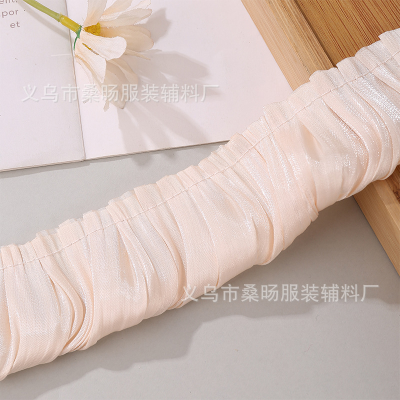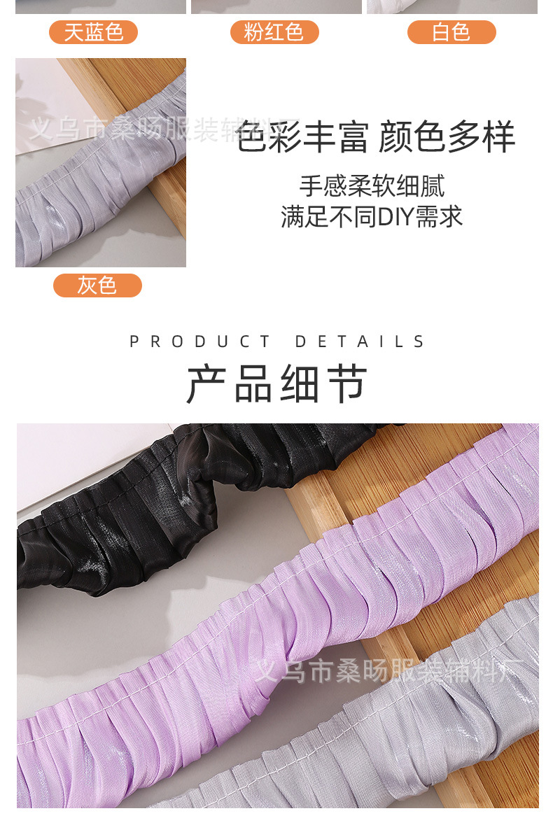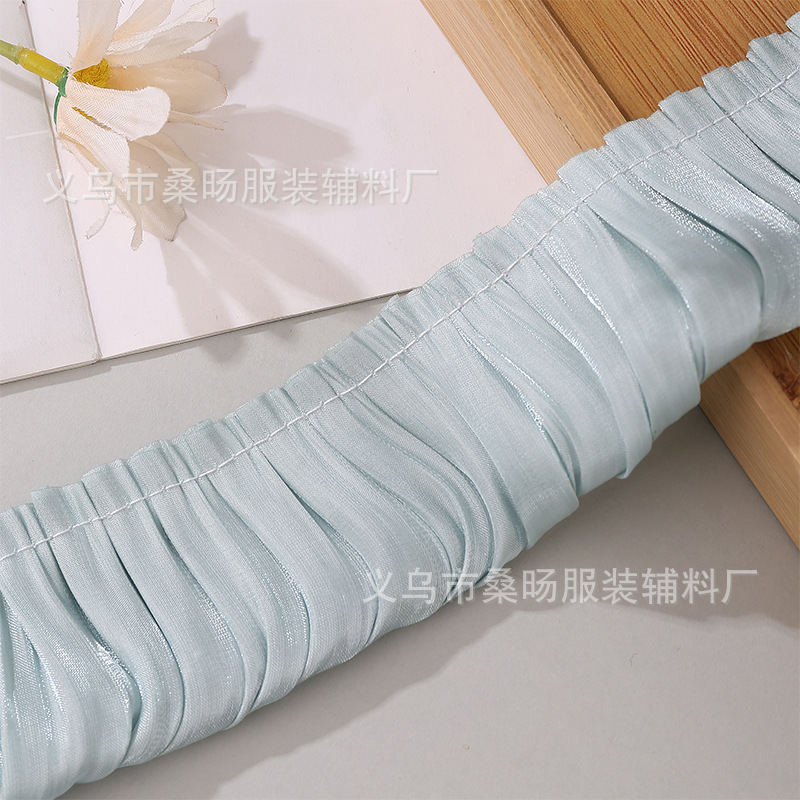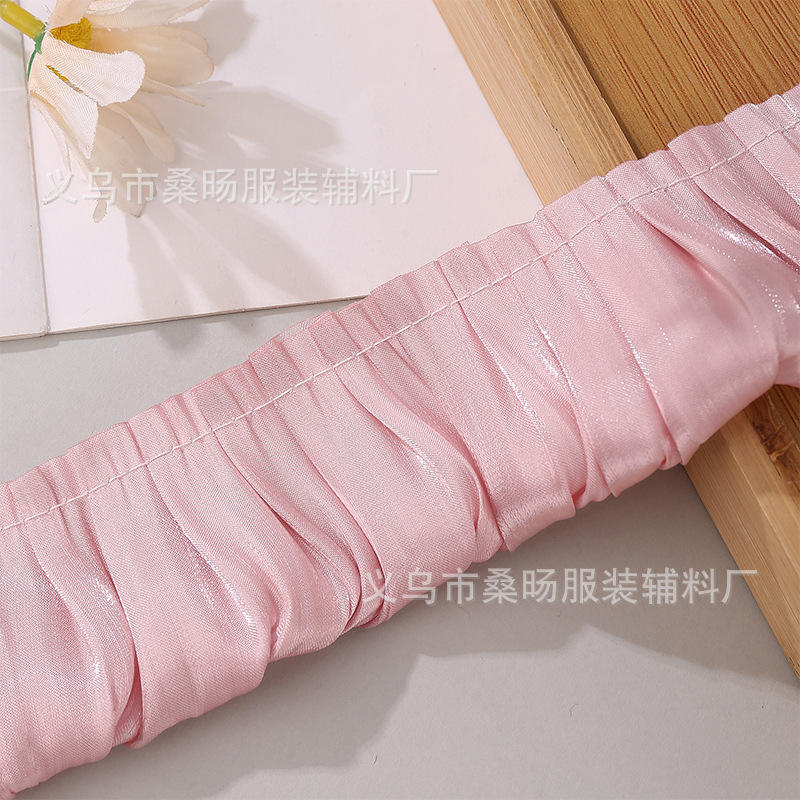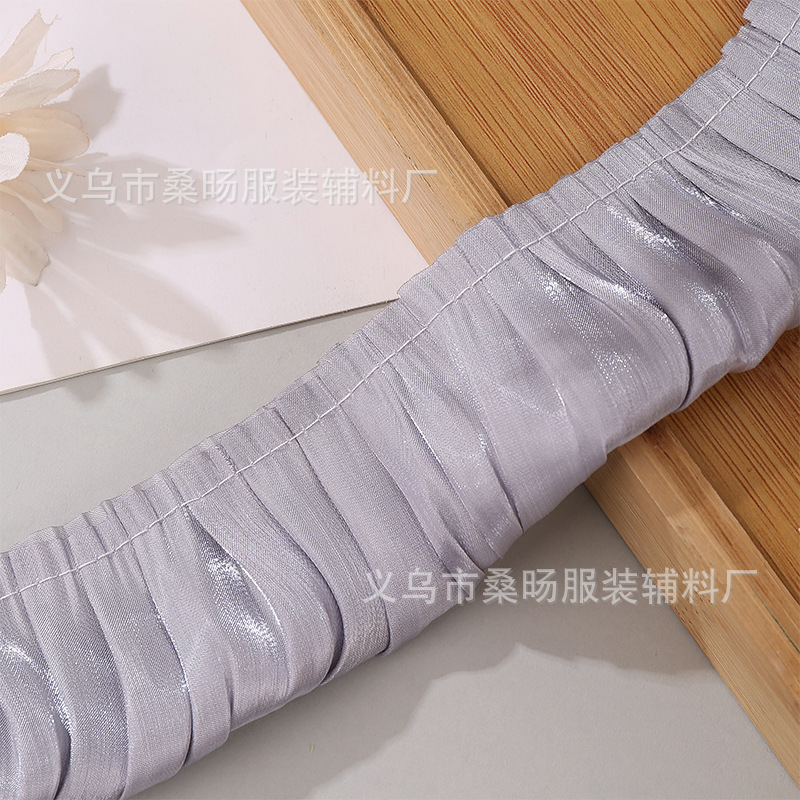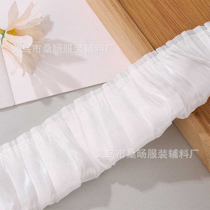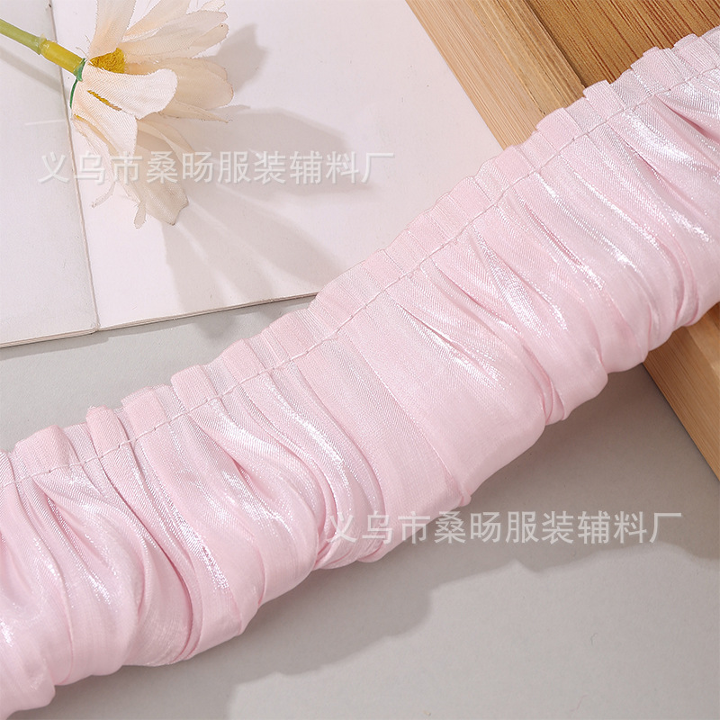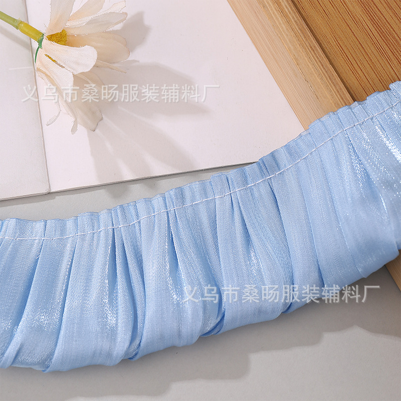 더블 컬러 반짝이 크리스탈 새틴 싱글 플리트 레이스 벨트 수제 DIY 의류 커프 칼라 플리츠 레이스스토어 가기