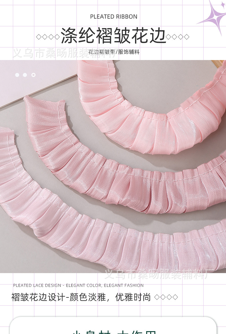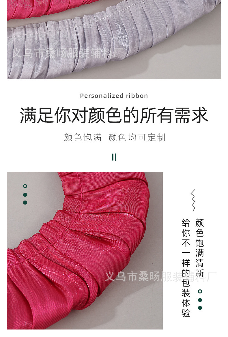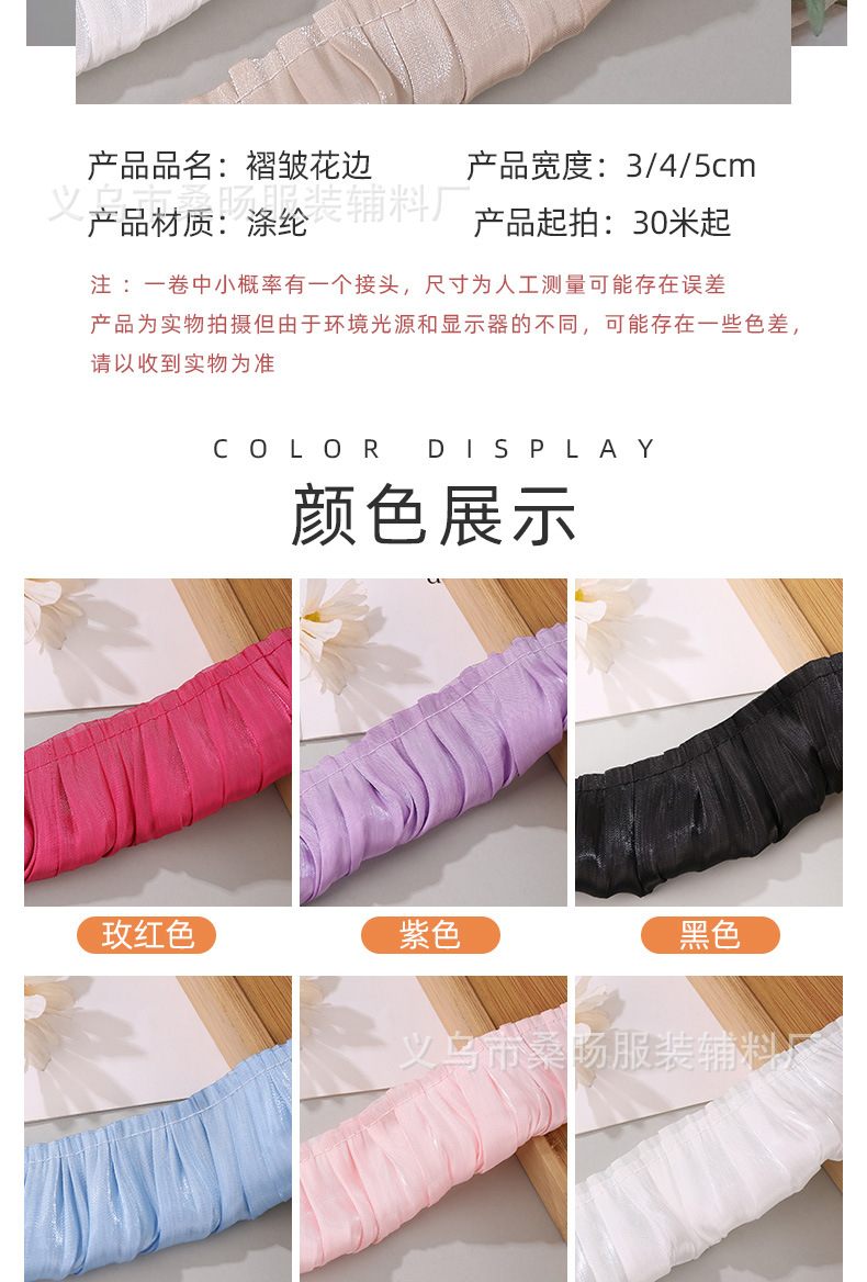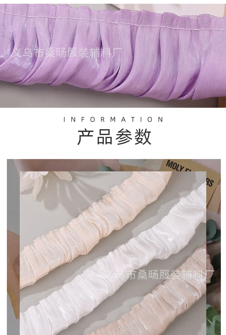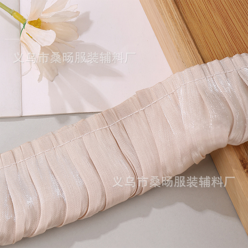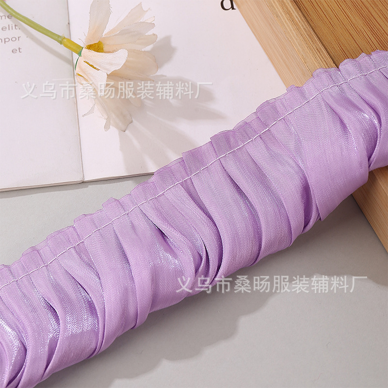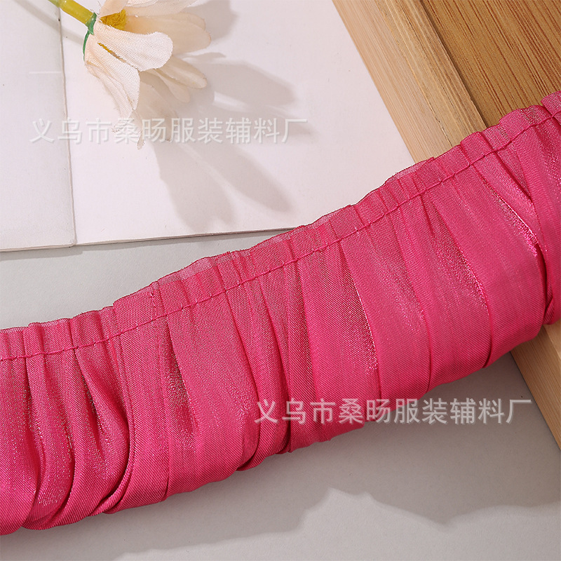 더블 컬러 반짝이 크리스탈 새틴 싱글 플리트 레이스 벨트 수제 DIY 의류 커프 칼라 플리츠 레이스스토어 가기
