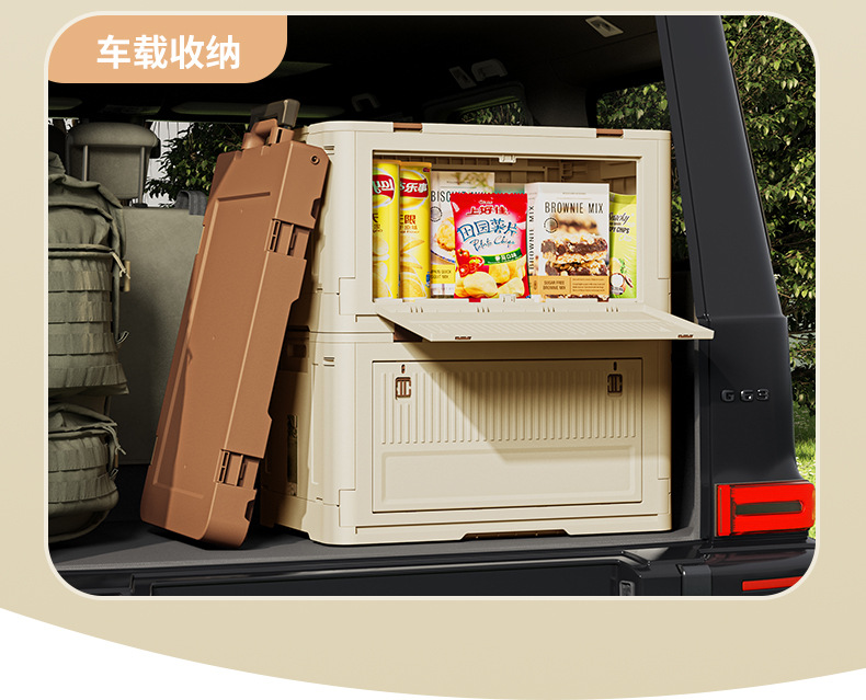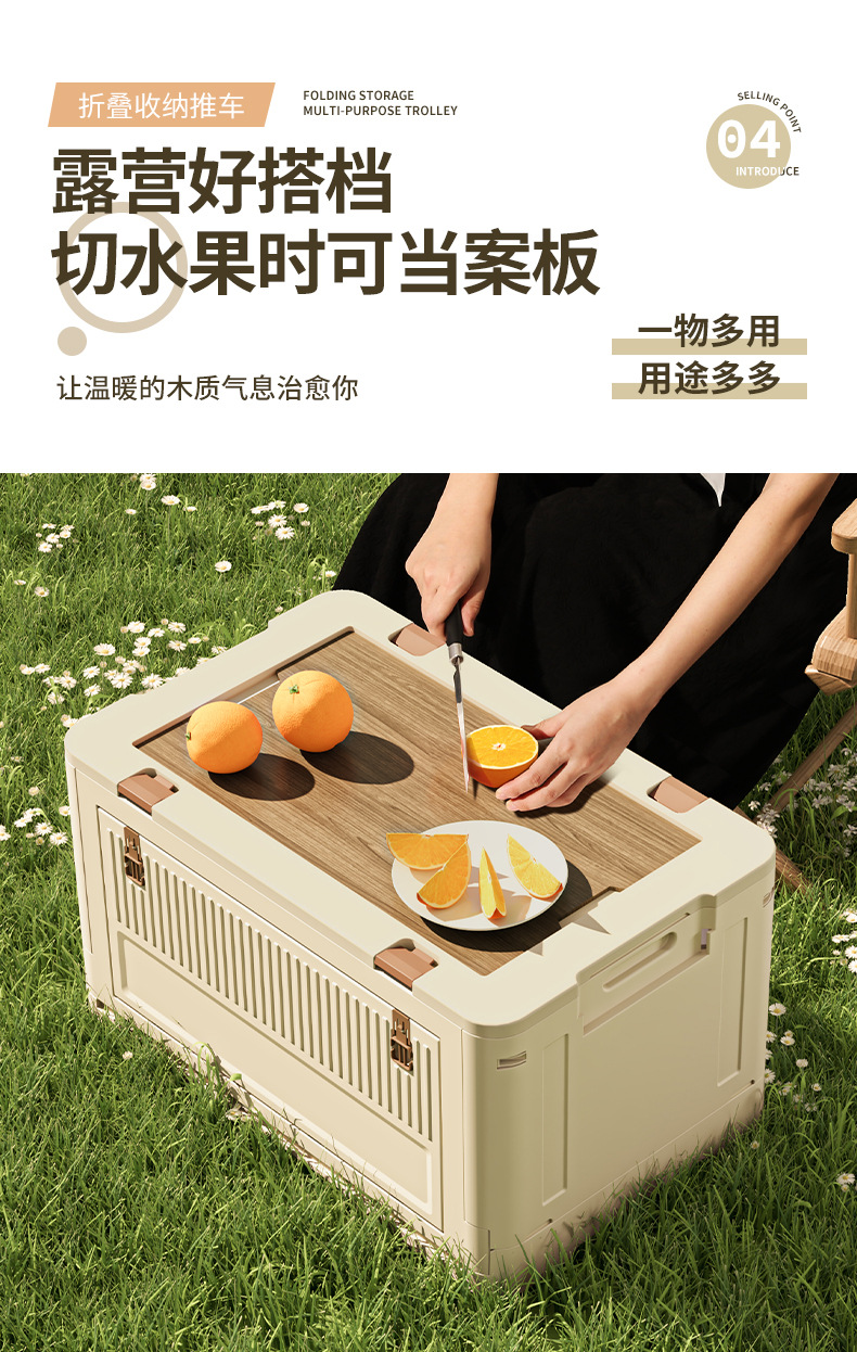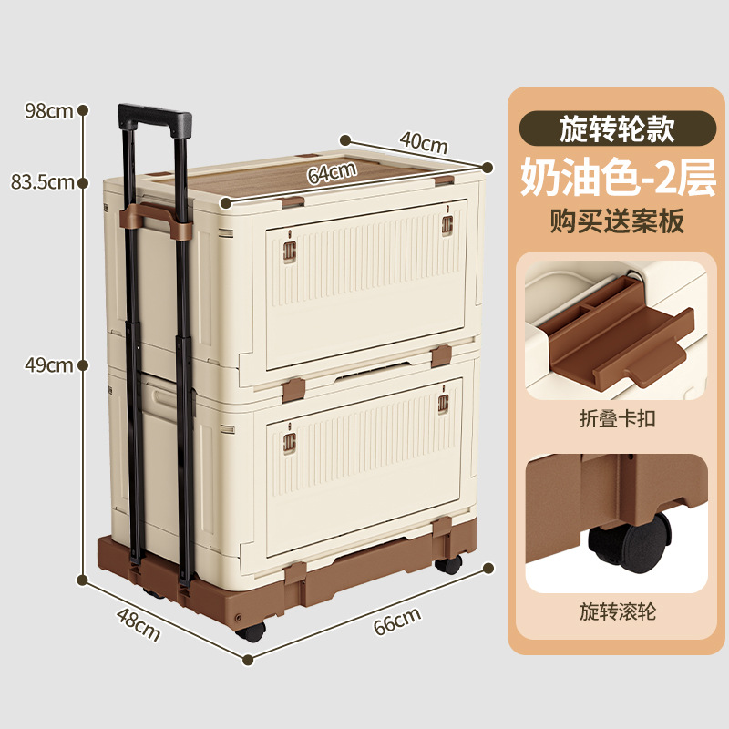 • 접이식 상자 + 트롤리 트레일러 1+1(유니버설 휠 + 나무판 없음) 베이지 브라운