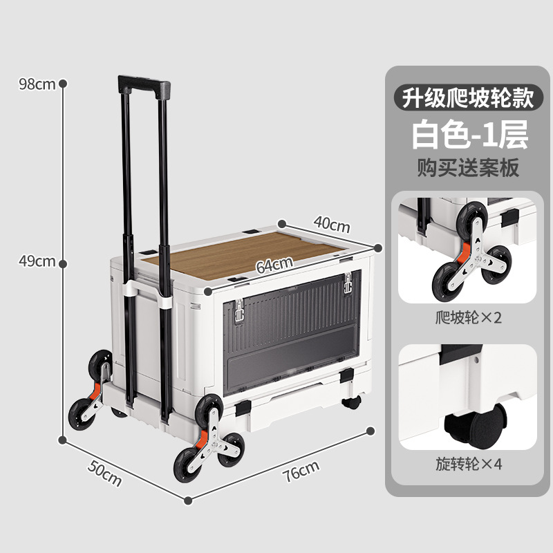 • 접이식 상자 + 트롤리 트레일러 2+1(유니버설 휠 + 사다리 휠 + 나무판 포함) 흰색 및 검정색