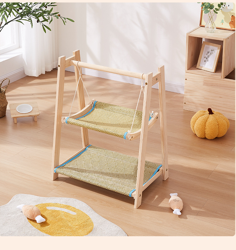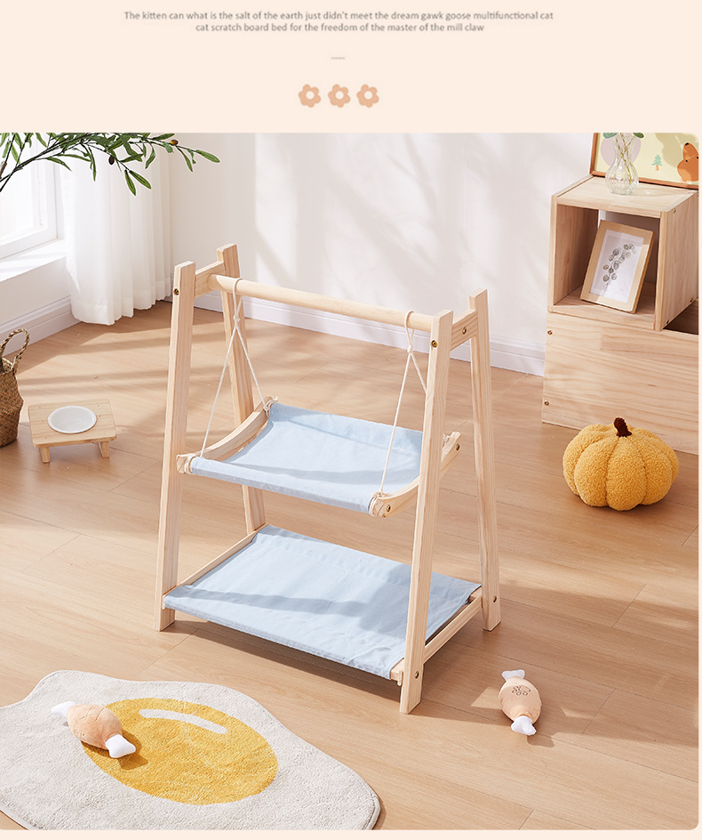고양이 스윙 침대, 이층 고양이 해먹, 고양이 둥지, 사계절 만능 원목 애완동물 침대, 탈부착 및 세탁 가능한 고양이 침대, 애완동물 둥지