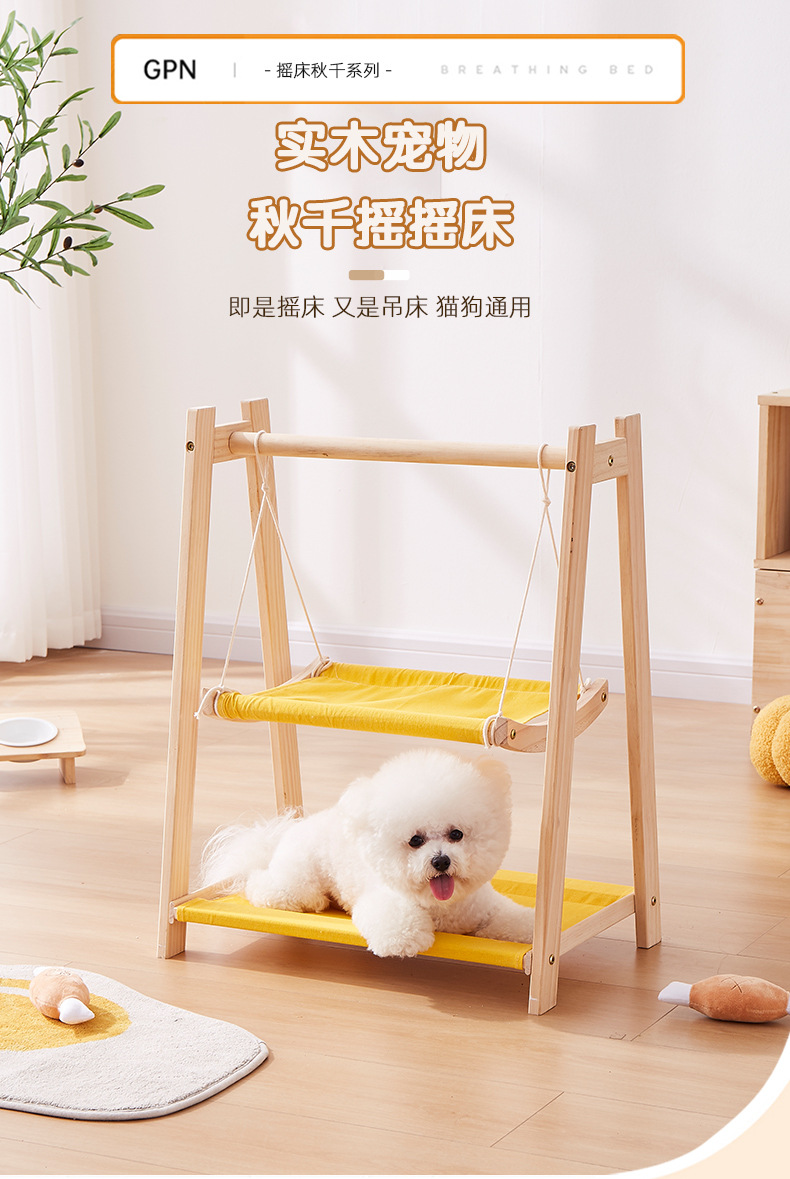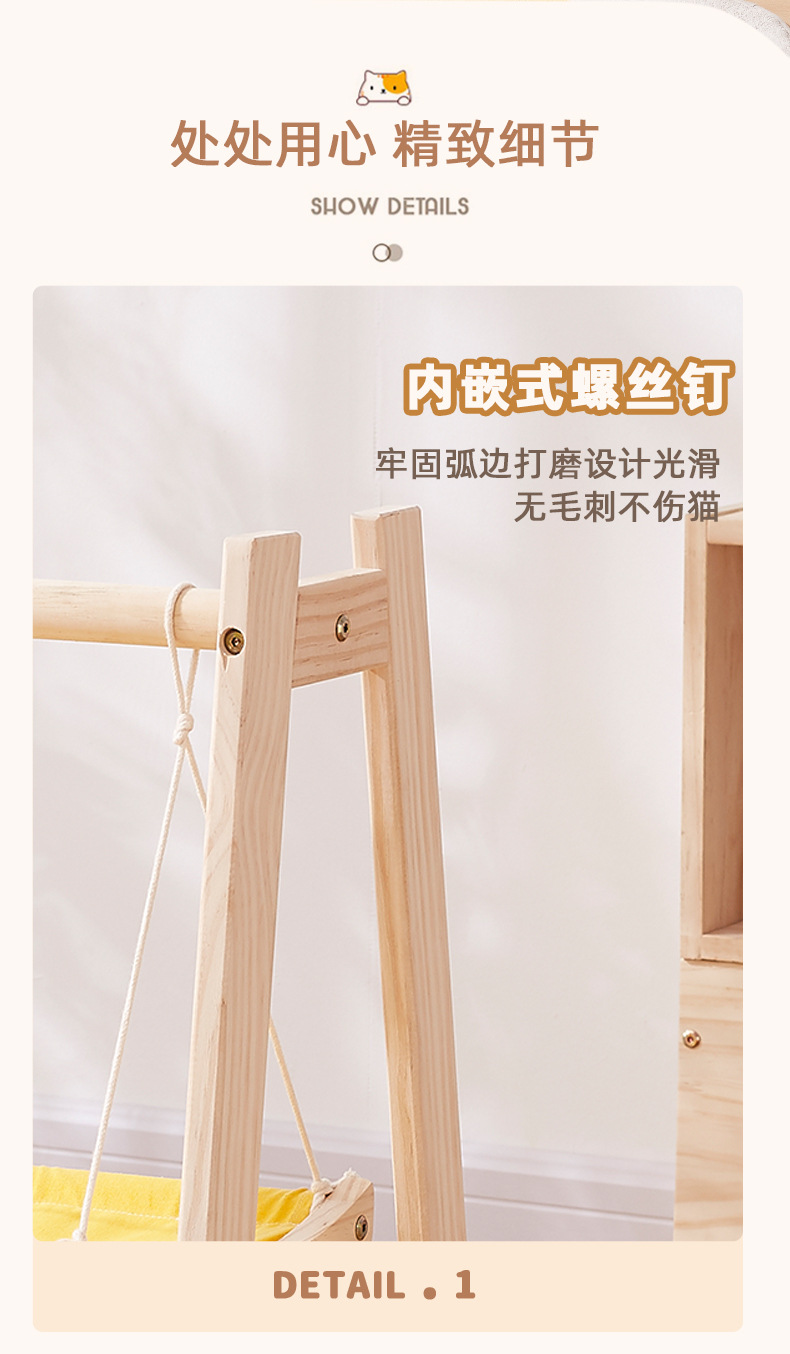 고양이 스윙 침대, 이층 고양이 해먹, 고양이 둥지, 사계절 만능 원목 애완동물 침대, 탈부착 및 세탁 가능한 고양이 침대, 애완동물 둥지스토어 가기