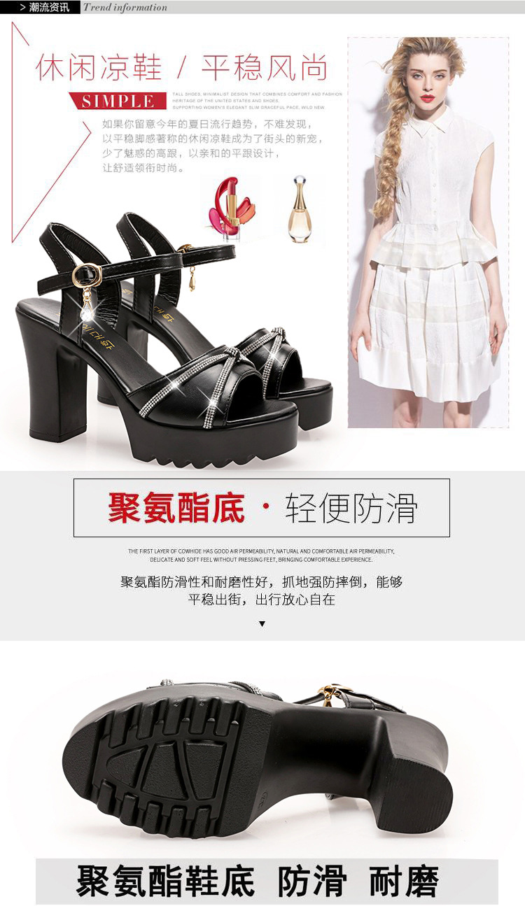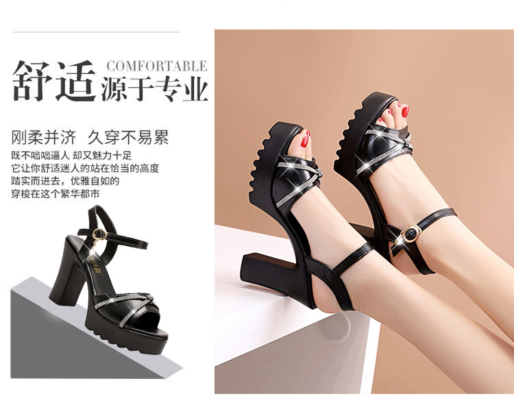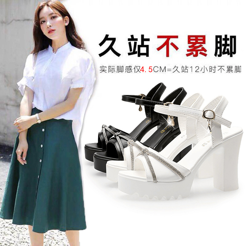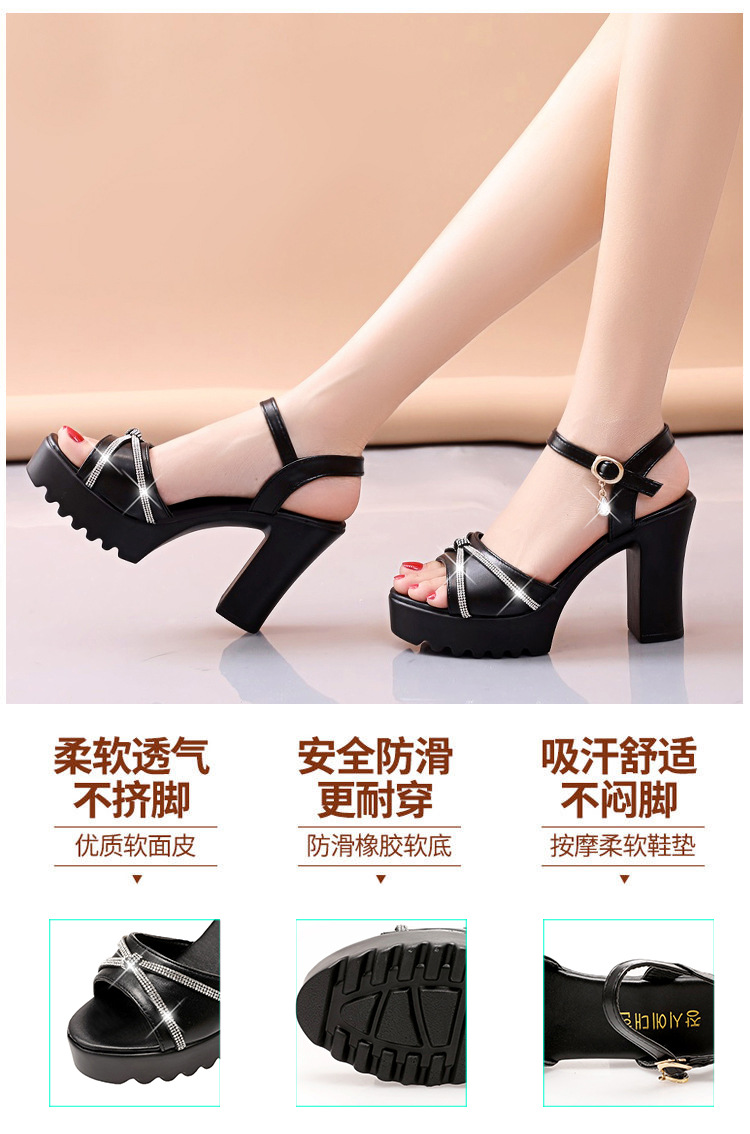 새로운 하이힐 샌들 두꺼운 힐 방수 플랫폼 올 매치 여름 소프트 가죽 편안한 서양식 높이 증가 여성 신발스토어 가기