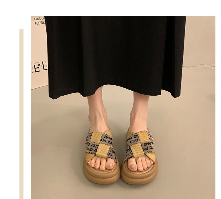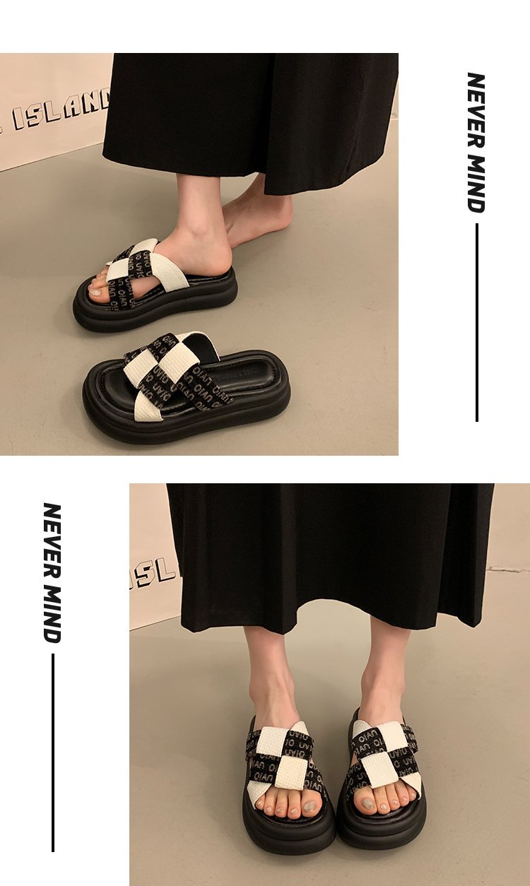 인터넷 유명한 아름다운 두꺼운 밑창 샌들과 슬리퍼 여성 여름 겉옷 패션 스커트 2024 새로운 하이 엔드 느낌 나들이 비치 슈즈스토어 가기