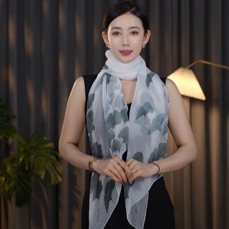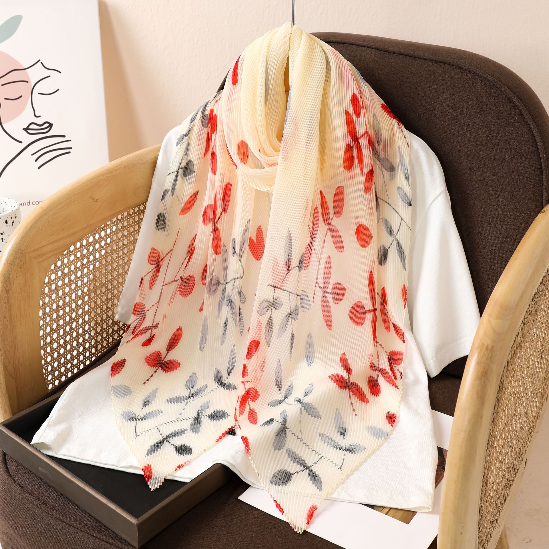 새로운 스타일 인쇄 된 크레페 실크 스카프 여름 선 스크린과 양산 다기능 헤드 스카프 모든 경기 장식 주름 스카프