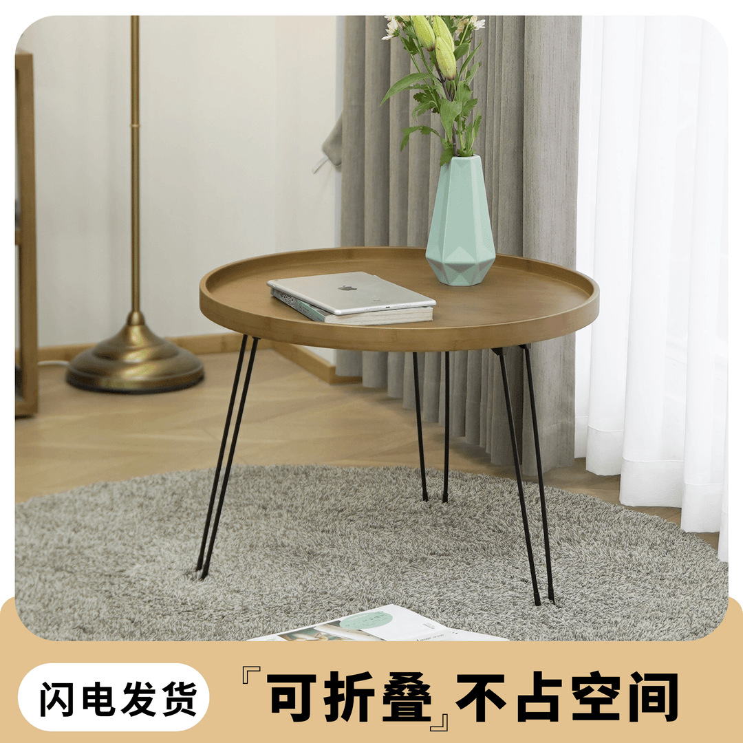 샹푸 대나무 접이식 테이블 거실 발코니 작은 커피 테이블 침실 베이 창 야외 캠핑을위한 작은 라운드 테이블 휴대용 보관