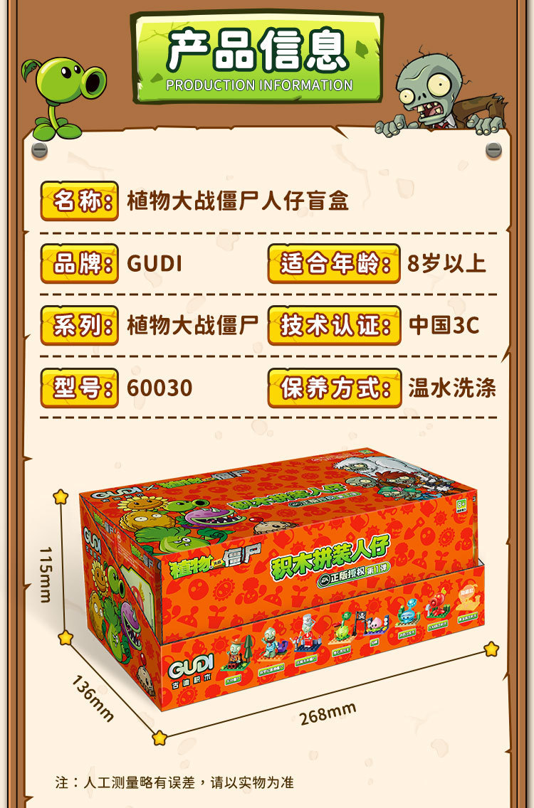 • Gudi 60031 식물 대 좀비 8종 세트