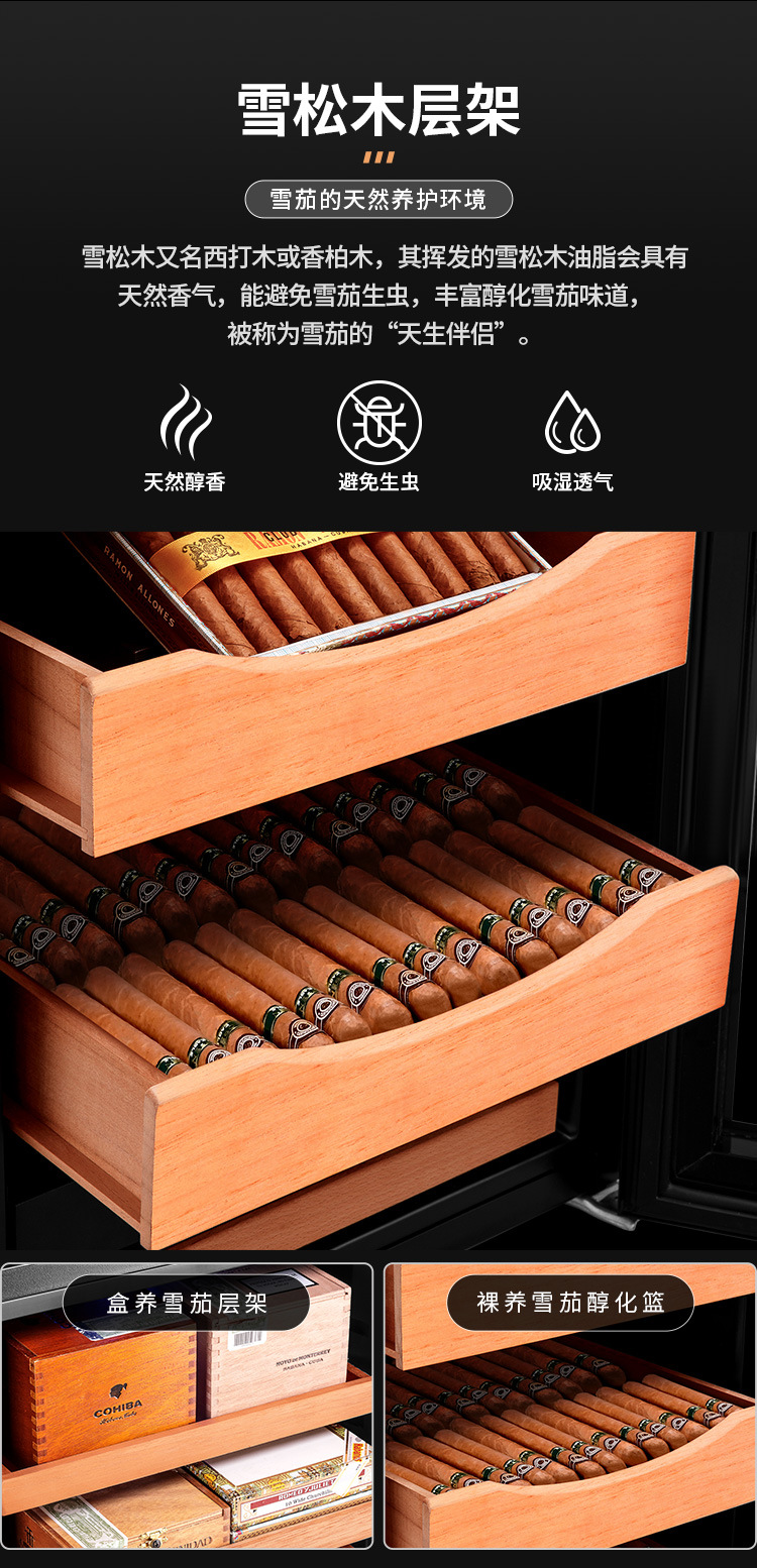 控温保湿雪茄柜雪松木电子红酒柜茶叶烟柜古巴茄窖风冷无霜加湿器