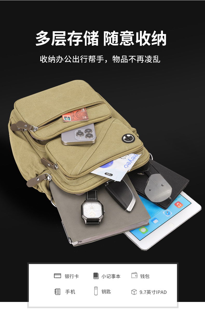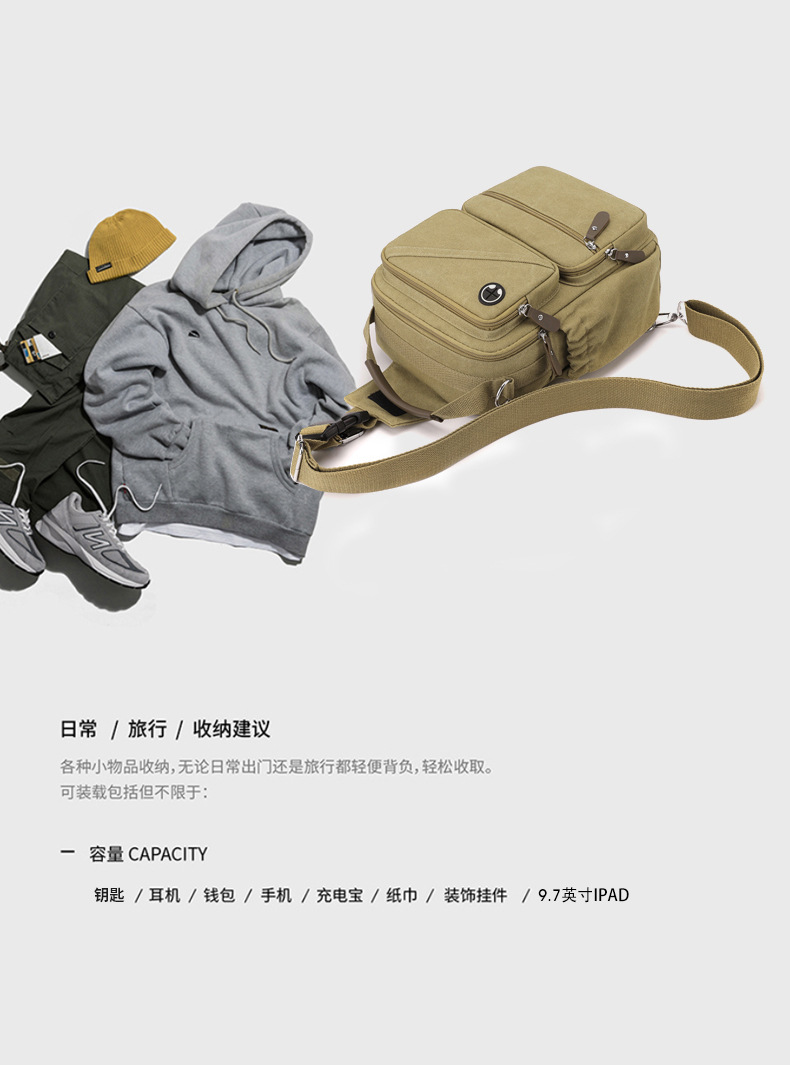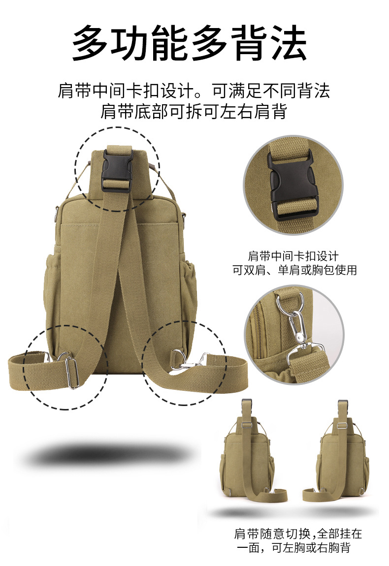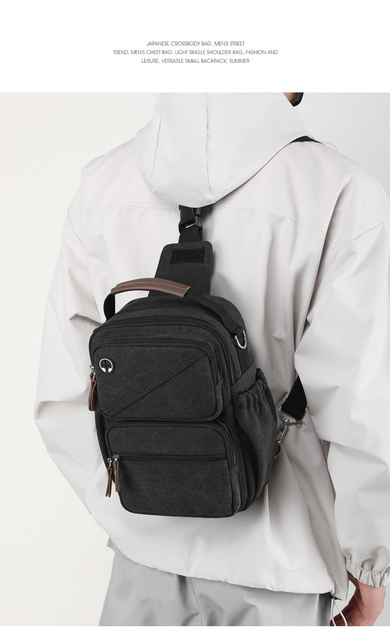 2024 여름 캐주얼 작은 배낭 유니섹스 빈티지 캔버스 싱글 숄더 크로스 바디 백 툴링 대용량 가슴 가방스토어 가기