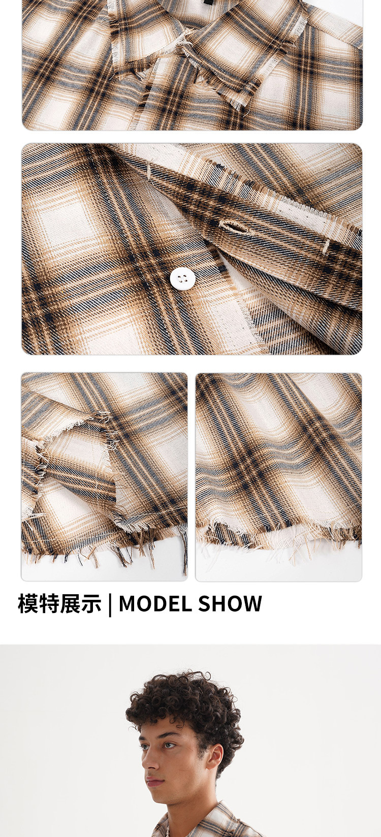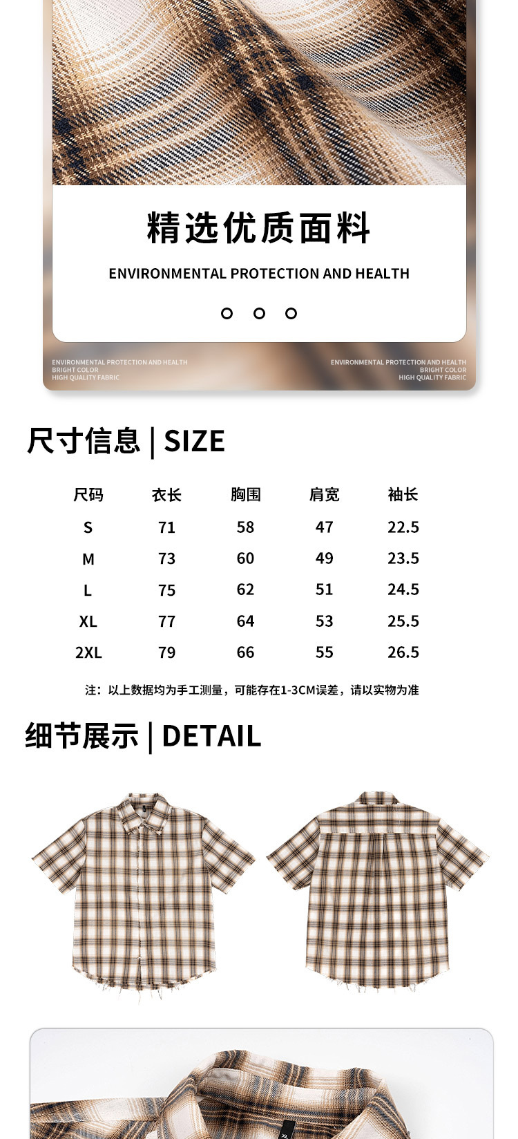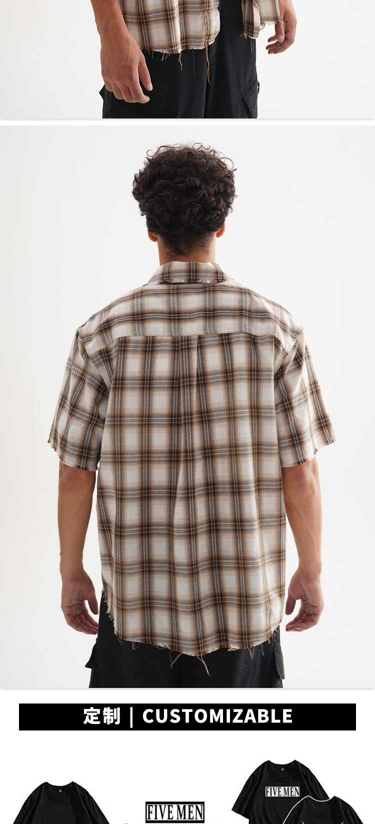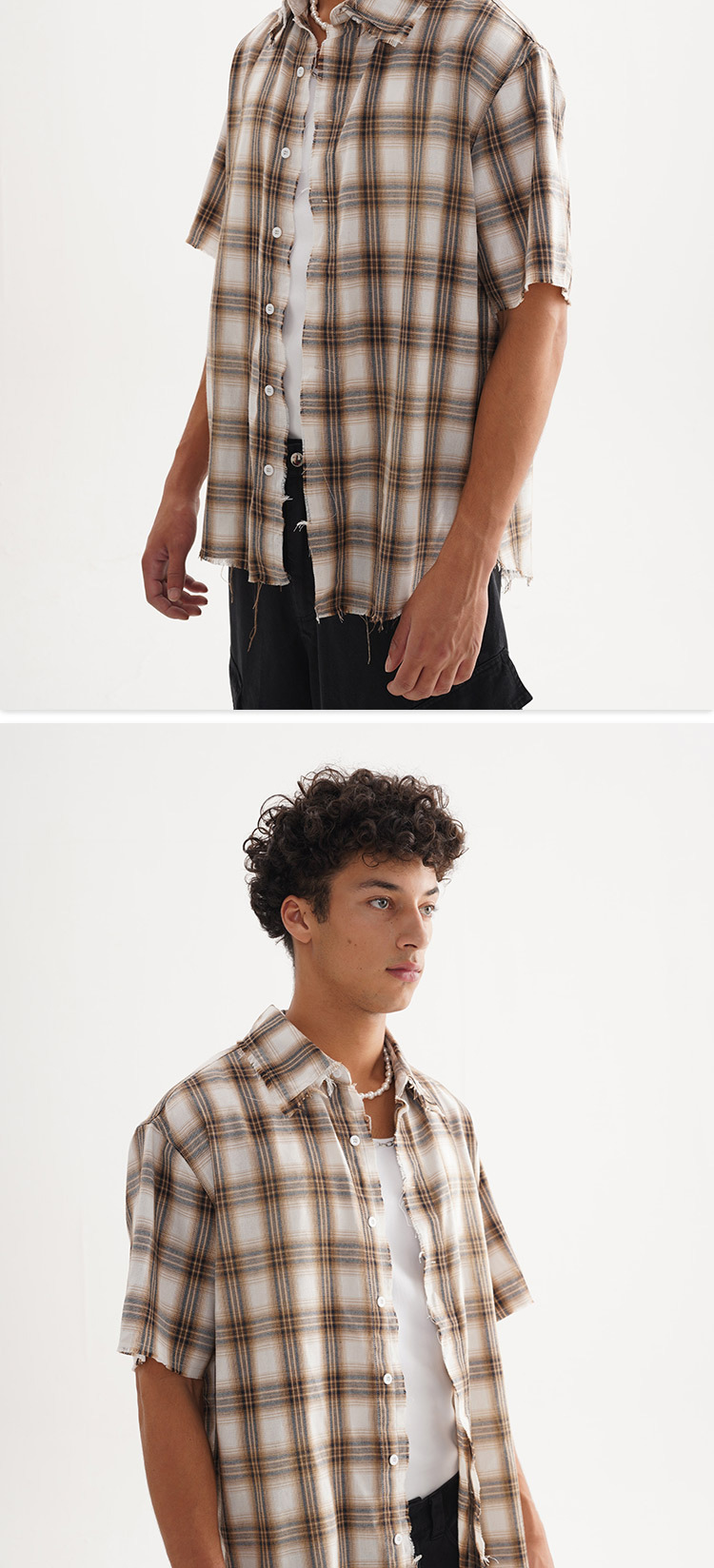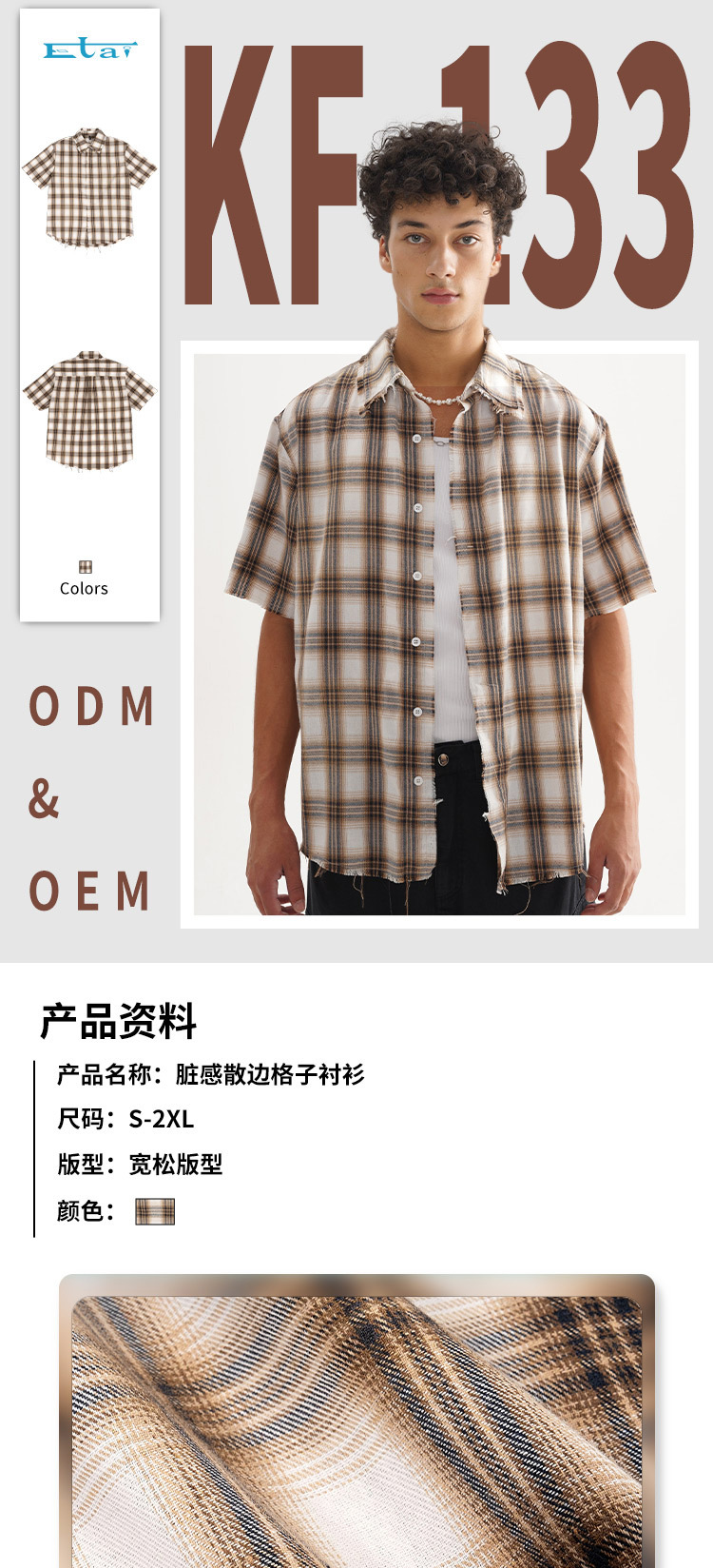 ETAI 남성복 | 청소년 패션 스트리트 체크무늬 반팔 셔츠 남성 여름 루즈핏 남성 셔츠스토어 가기