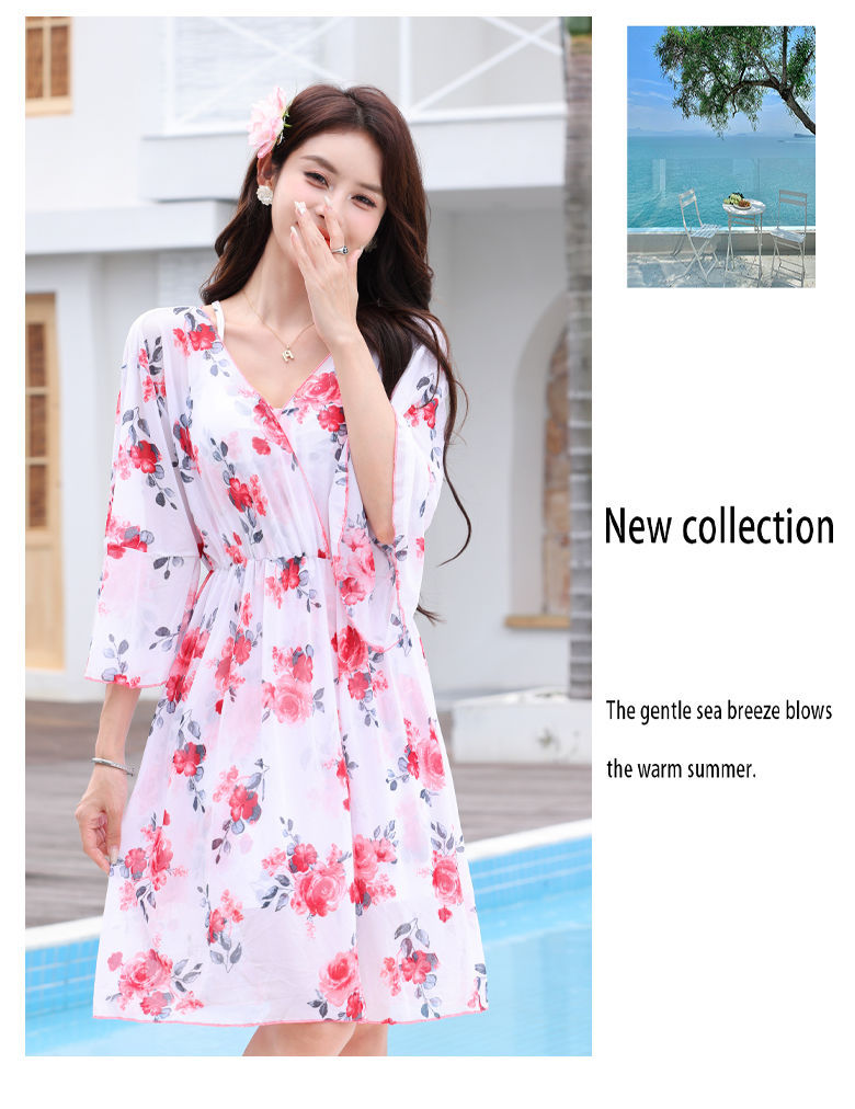 수영복 여성 해변 휴일 분할 플러스 사이즈 200 진 비키니 스커트 3 피스 세트 섹시한 선스크린스토어 가기