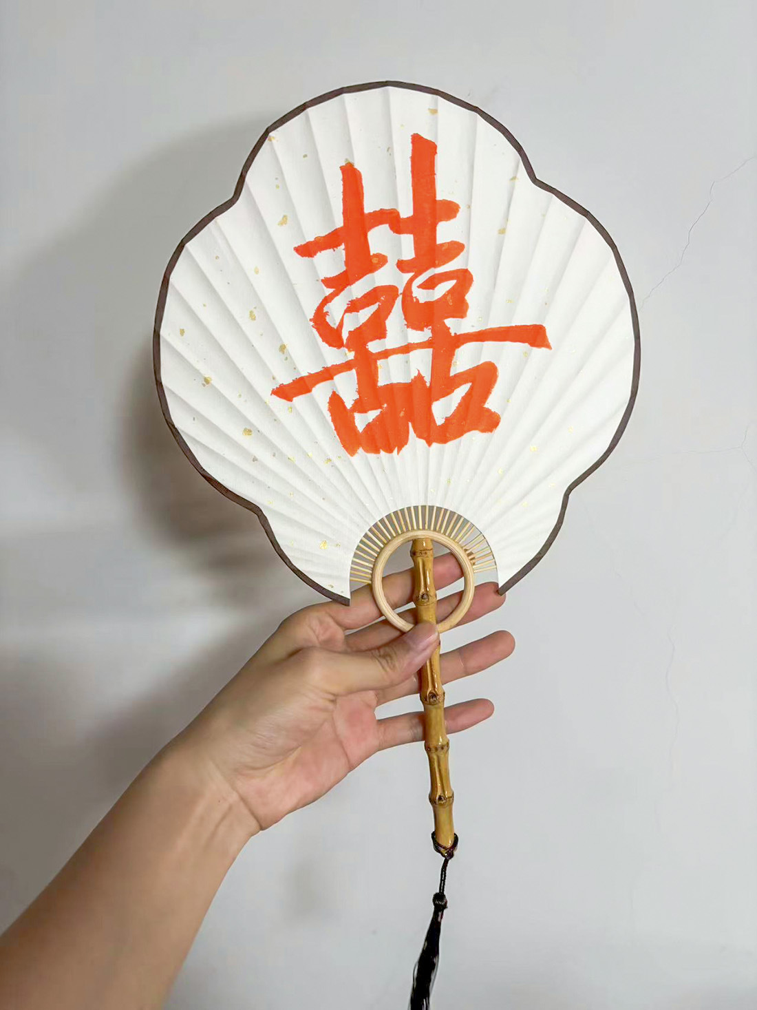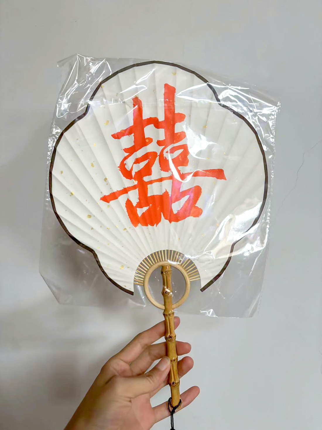 중국 웨딩 웨딩 레드 더블 행복 신부 들러리 핸드 헬드 소품 팬 꽃 웨딩 수제 DIY 손으로 그린 그룹 팬