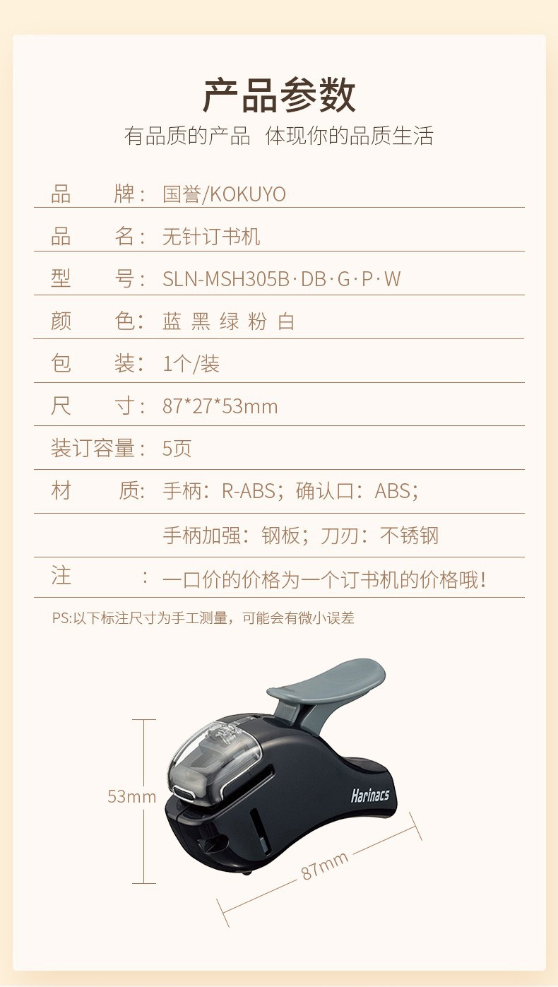 Guoyu KOKUYO 바늘없는 스테이플러 MSH305 노동 절약 디자인 학생 사무실 문서 스테이플러스토어 가기
