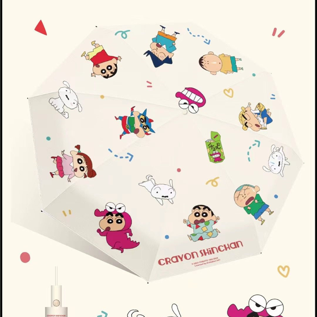 Zhiyu Crayon Xiaoxin 자동 우산 맑고 비 이중 사용 귀여운 검은 고무 선 스크린 UV 태양 우산 태양 우산스토어 가기