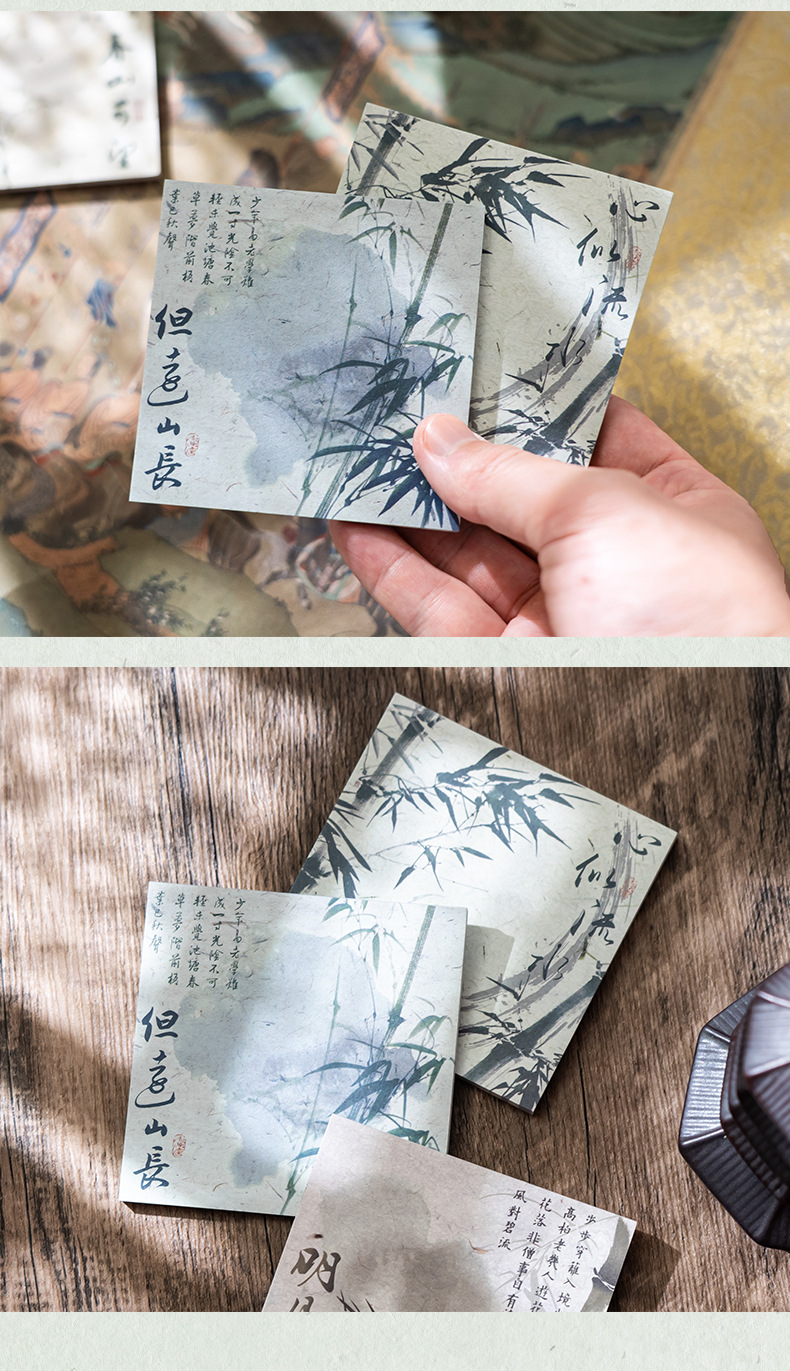 골동품 노트 북 끈적 거리지 않는 창조적 인 중국 스타일 대나무 노트 종이는 높은 색상 가치 손 계정 재료 종이로 찢을 수 있습니다.스토어 가기