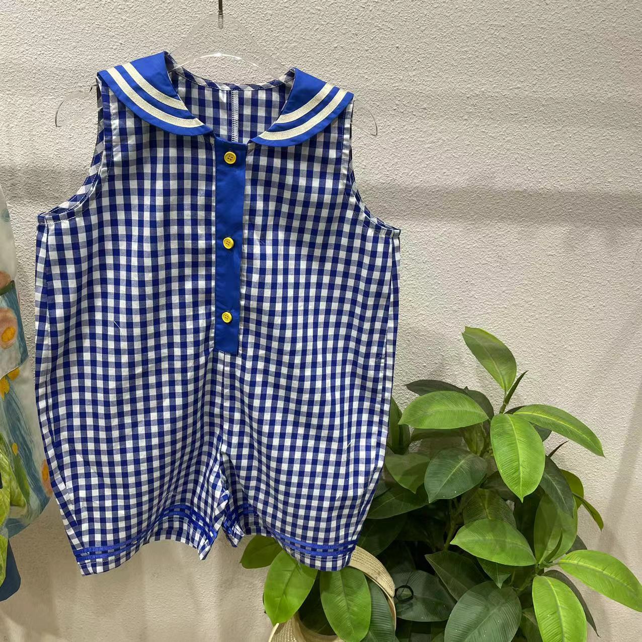 어린이 여름 새로운 서양식 소년 소녀 해군 칼라 어부 바지 5 점 캐주얼 올 매치 아일랜드 패션스토어 가기