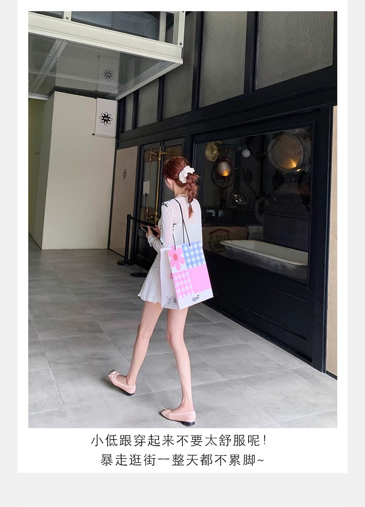 스팟 프렌치 메리제인 발레 스타일 스플라이스 스몰 스퀘어 토 펌프스 슬립온 플랫 캐주얼 보우 여성용 슈즈