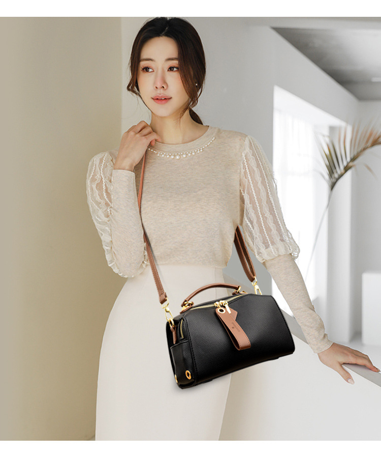 보스턴 베개 가방 2023 새로운 가죽 여성 가방 패션 크로스 바디 어깨 가방 인기있는 더블 어깨 스트랩 크리에이티브 풀 헤드