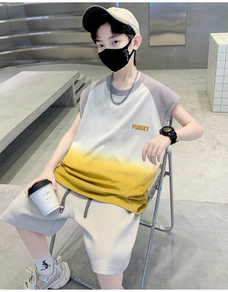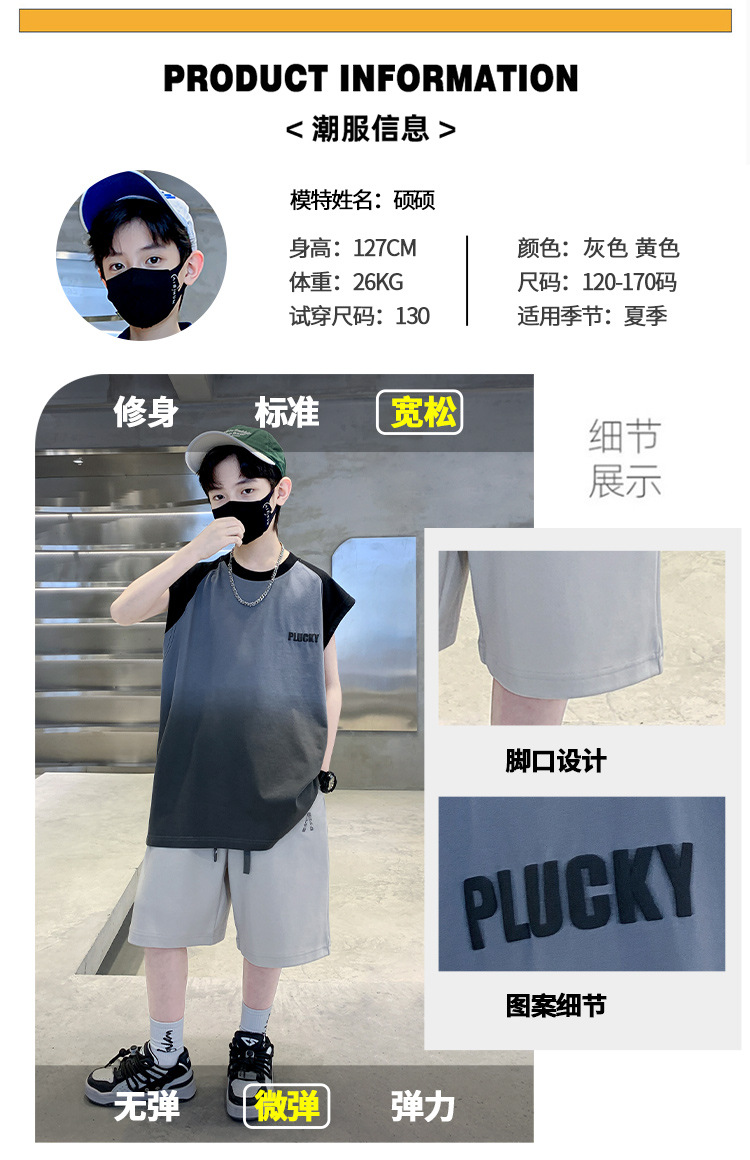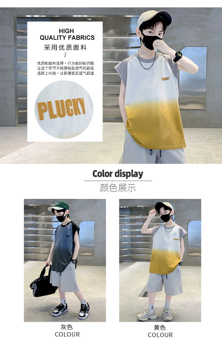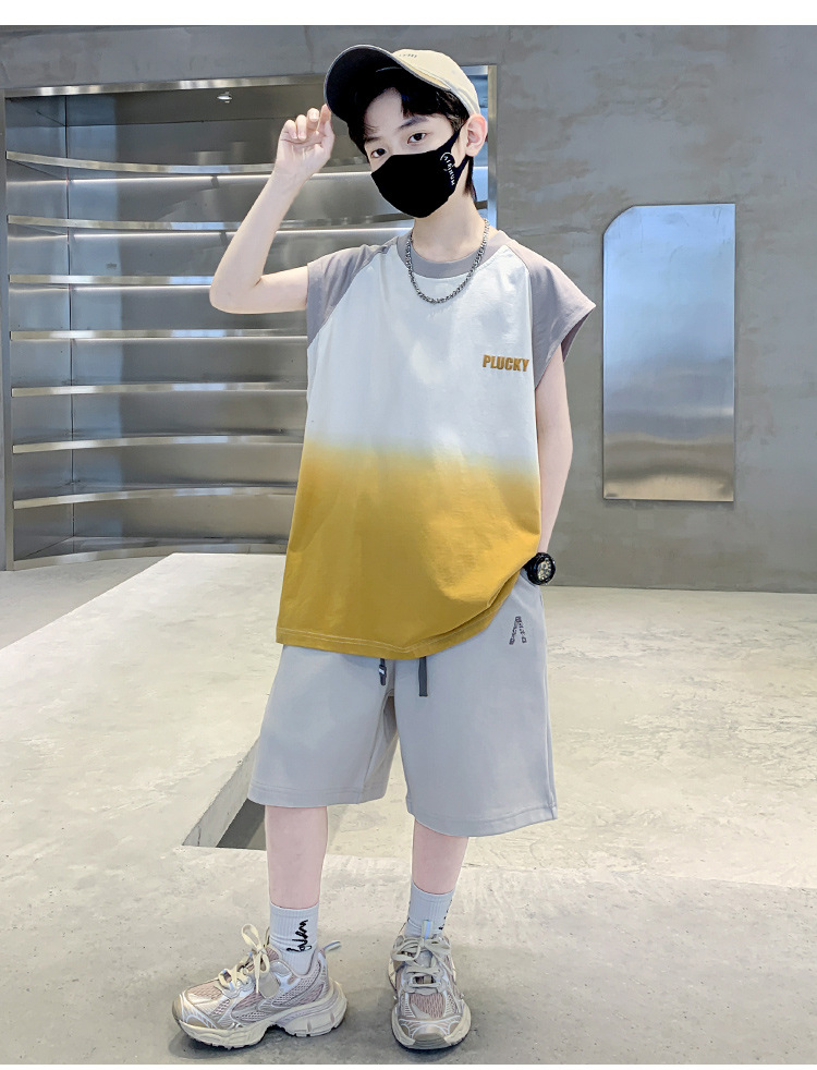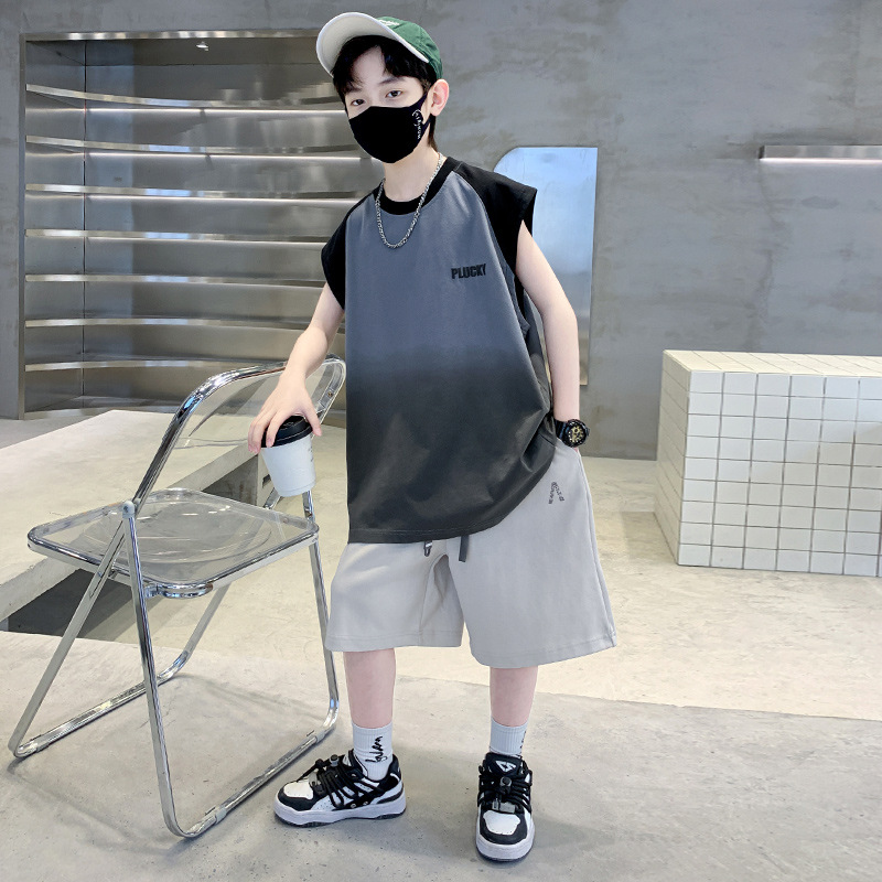 남학생 여름 조끼 세트 2024 년 대형 소년을위한 새로운 유행 민소매 얇은 잘 생긴 투피스 세트
