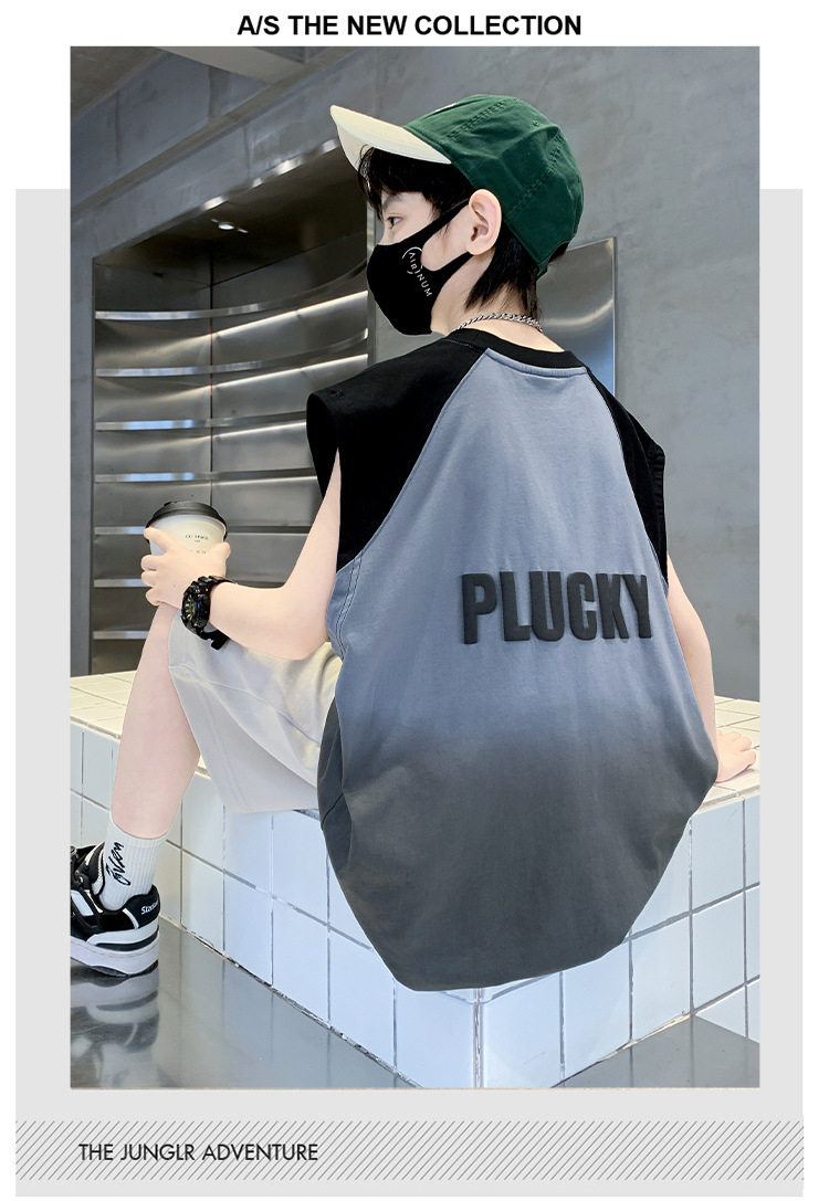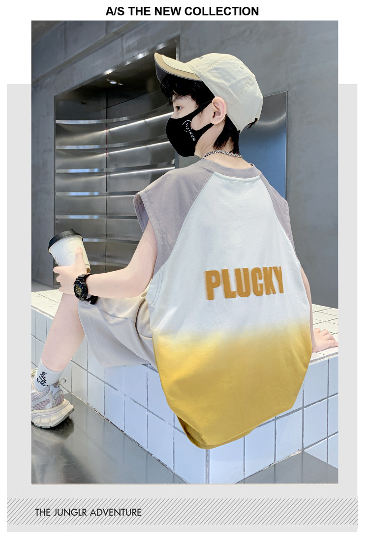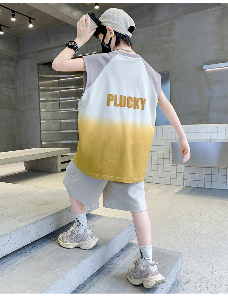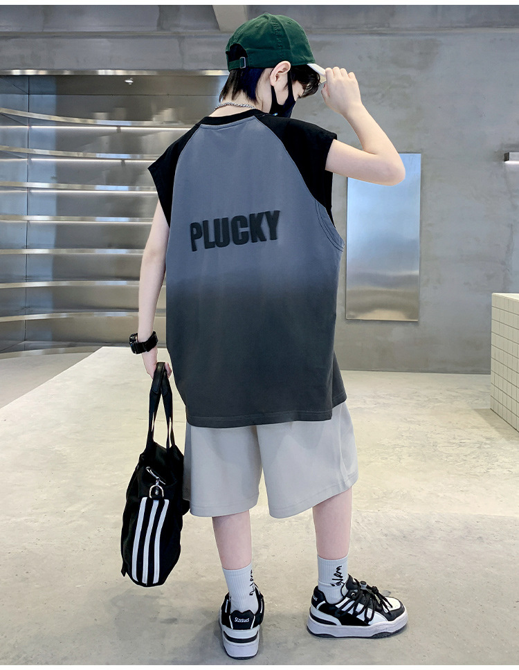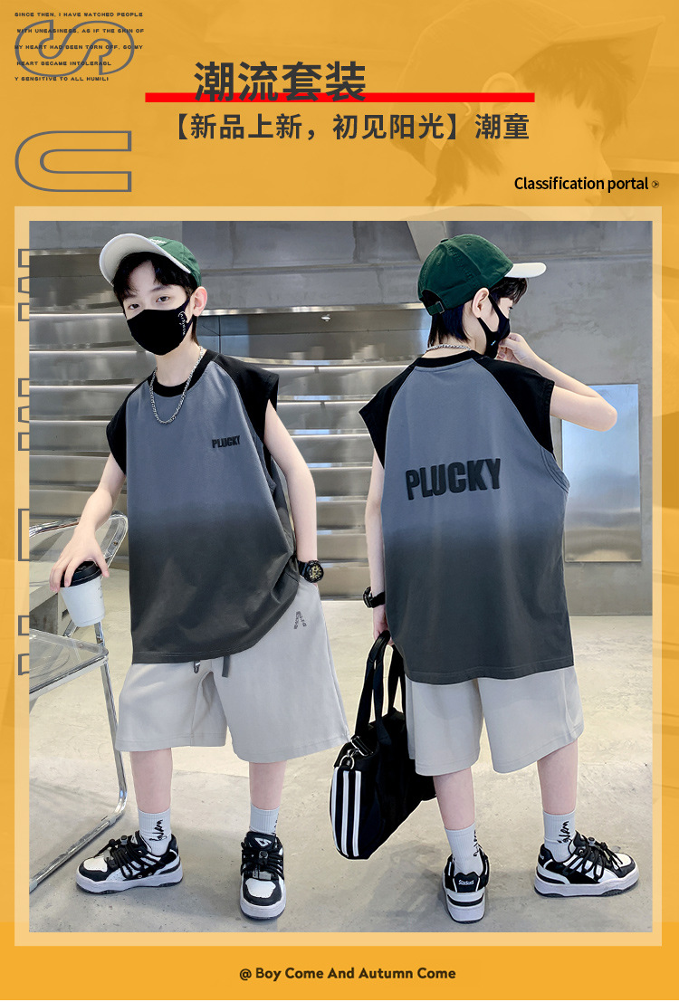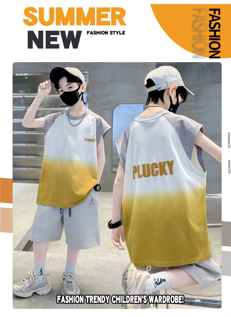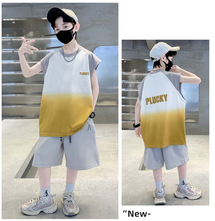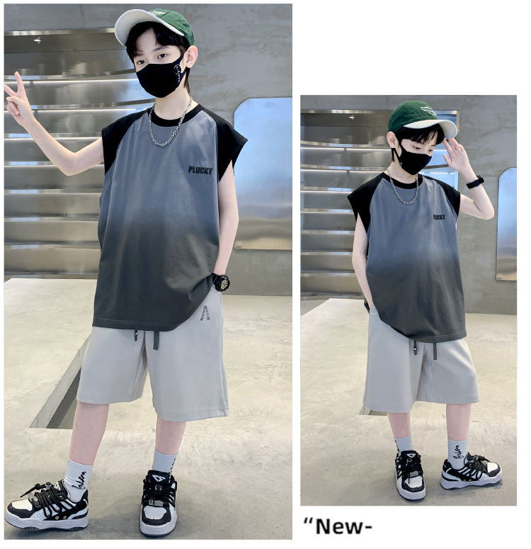 남학생 여름 조끼 세트 2024 년 대형 소년을위한 새로운 유행 민소매 얇은 잘 생긴 투피스 세트스토어 가기